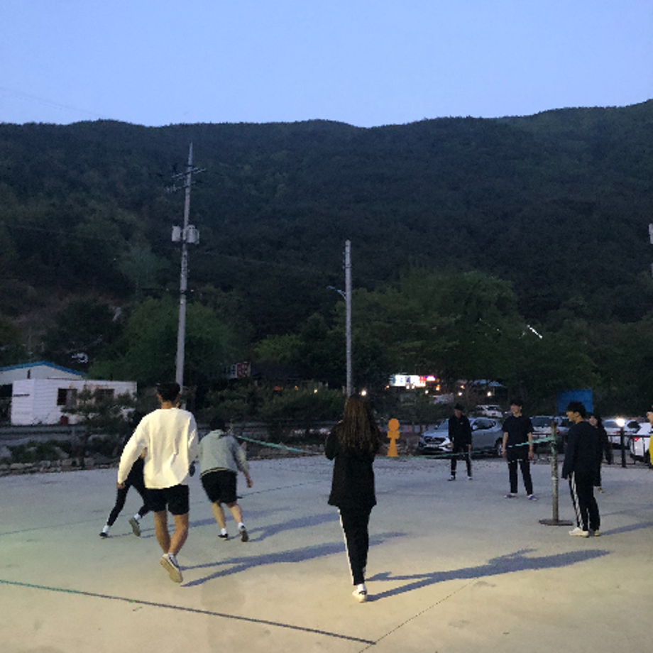 끝나지 않는 밤을 앞두고 무작위 팀 족구 한마당을 벌였습니다.