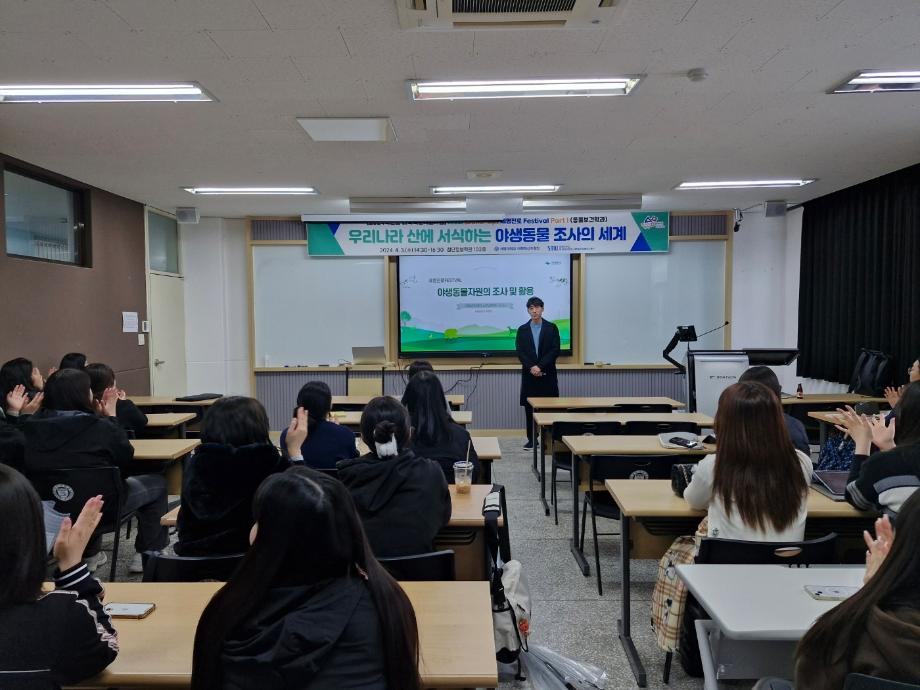 본문 시작 홈으로 학과게시판 학과소개 교육과정 학과게시판 관련사이트 홈페이지가이드 포토갤러리 학과소식 포토갤러리 동아리 소개 포토갤러리 페이스북 트위터 프린트 진로페스티벌 "야생동물 조사의 세계" 동물보건학과 1826 2024-04-22 2024년 1학기 진로페스티벌 프로그램으로 소백산 국립공원 북부사무소 (단양소재)에 근무하시는 최영준 계장님을 초청하였습니다. 소백산 국립공원에서 진행중인 소백산 서식 생물자원 조사와 관련된 재미있는 이야기를 들었습니다. 동물원만 생각했던 야생동물의 세계가 우리 주변의 산으로 확대 되었습니다. 목록 이전동물원에 다녀왔습니다!!!! 다음 아모니멀 수제간식 나눔행사 담당부서 : 동물보건학과 담당자 : - 연락처 : 043-649-1627 최종수정일 : 2024-10-26 만족도조사 만족도 조사 이 페이지에서 제공하는 정보에 대하여 만족하시나요? 매우만족 만족 보통 불만족 매우불만족
