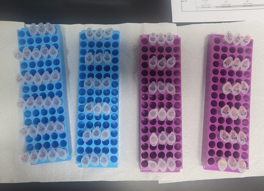 세명대학교 동물보건학과 재학생이 저장혈액의 산소보존능력 향상 실험을 수행하고 있는 모습. 전공역량 학술연구 프로그램의 일환으로, 실무와 연결되는 실험 중심 교육을 경험 중이다.