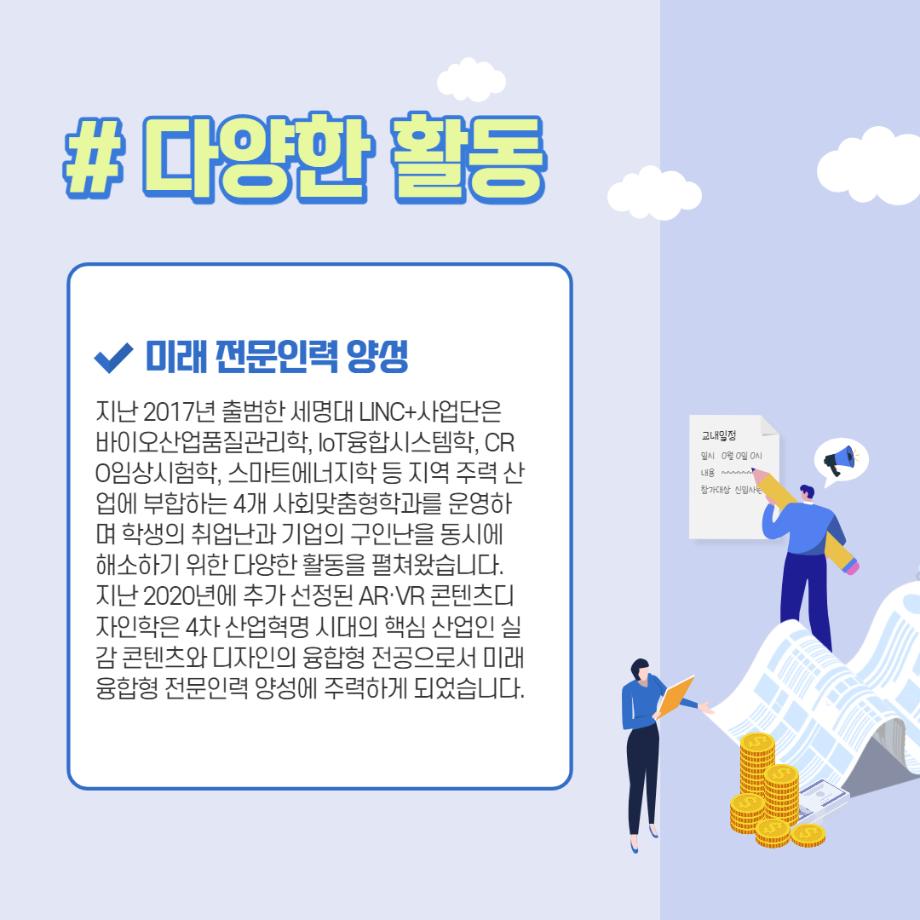 본문 시작 홈으로 학과자랑 학과소개 학과과정 시영소식 입학/취업 AI 학과자랑 SNS소통 홈페이지가이드 갤러리 학과자랑 갤러리 공모전 동아리 졸업전시회 갤러리 페이스북 트위터 프린트 AR/VR 연계전공 관련 카드뉴스 시각영상디자인학과 2260 2022-02-07 목록 이전세명대학교 통학버스 알아보기 다음 데칼코마니 랩실 리뉴얼 카드뉴스 담당부서 : 시각영상디자인학과 담당자 : - 연락처 : 043-649-1726 최종수정일 : 2024-10-26 만족도조사 만족도 조사 이 페이지에서 제공하는 정보에 대하여 만족하시나요? 매우만족 만족 보통 불만족 매우불만족