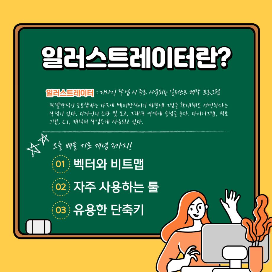 본문 시작 홈으로 학과자랑 학과소개 학과과정 시영소식 입학/취업 AI 학과자랑 SNS소통 홈페이지가이드 갤러리 학과자랑 갤러리 공모전 동아리 졸업전시회 갤러리 페이스북 트위터 프린트 예비 대학생을 위한 디자인 프로그램 설명 1탄 (일러스트레이터) 시각영상디자인학과 2311 2022-02-07 1학년때 배우는 디자인 툴 일러스트레이터입니다. 목록 이전AR/VR 연계전공 소개 카드뉴스 다음 예비 대학생을 위한 디자인 프로그램 설명 2탄 (포토샵) 담당부서 : 시각영상디자인학과 담당자 : - 연락처 : 043-649-1726 최종수정일 : 2024-10-26 만족도조사 만족도 조사 이 페이지에서 제공하는 정보에 대하여 만족하시나요? 매우만족 만족 보통 불만족 매우불만족
