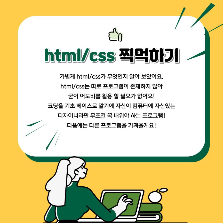 본문 시작 홈으로 학과자랑 학과소개 학과과정 시영소식 입학/취업 AI 학과자랑 SNS소통 홈페이지가이드 갤러리 학과자랑 갤러리 공모전 동아리 졸업전시회 갤러리 페이스북 트위터 프린트 예비 대학생을 위한 디자인 프로그램 설명 4탄 (Html/Css) 시각영상디자인학과 2243 2022-02-07 3학년때 배우는 html/css입니다. 목록 이전예비 대학생을 위한 디자인 프로그램 설명 3탄 (애프터이펙트) 다음 예비 대학생을 위한 디자인 프로그램 설명 5탄 (인디자인) 담당부서 : 시각영상디자인학과 담당자 : - 연락처 : 043-649-1726 최종수정일 : 2024-10-26 만족도조사 만족도 조사 이 페이지에서 제공하는 정보에 대하여 만족하시나요? 매우만족 만족 보통 불만족 매우불만족