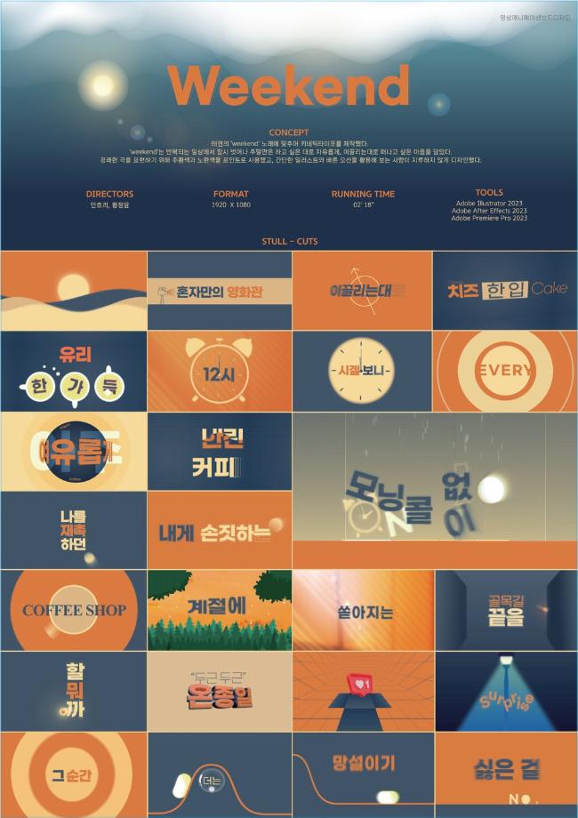 본문 시작 홈으로 학과자랑 학과소개 학과과정 시영소식 입학/취업 AI 학과자랑 SNS소통 홈페이지가이드 갤러리 학과자랑 갤러리 공모전 동아리 졸업전시회 갤러리 페이스북 트위터 프린트 2024년도 디자인 학관 복도 전시 작품(영상) 시각영상디자인학과 2462 2024-03-20 목록 이전2024년도 디자인 학관 복도 전시 작품(그래픽) 다음 2024년도 디자인 학관 복도 전시 작품(광고) 담당부서 : 시각영상디자인학과 담당자 : - 연락처 : 043-649-1726 최종수정일 : 2024-10-26 만족도조사 만족도 조사 이 페이지에서 제공하는 정보에 대하여 만족하시나요? 매우만족 만족 보통 불만족 매우불만족