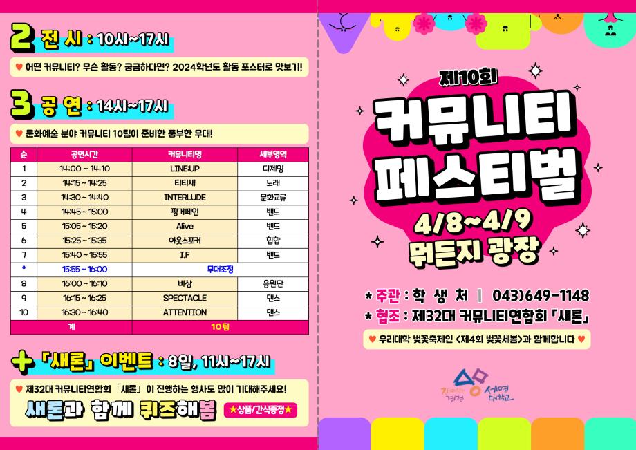 본문 시작 홈으로 학과생활 학과소개 교수소개 교과과정 학과생활 홈페이지가이드 사진게시판 공지사항 사진게시판 전공자료실 동아리 학과행사 사진게시판 페이스북 트위터 프린트 [학생처] 제10회 커뮤니티 페스티벌 산업디자인학과 1269 2025-04-02 목록 이전[인권센터] 2025학년도 학생대상(대학원생 포함) 폭력예방교육 다음 [CHARM케어상담센터] 2025학년도 1학기 자살예방교육 실시 담당부서 : 산업디자인학과 담당자 : - 연락처 : 043-649-1436 최종수정일 : 2024-10-26 만족도조사 만족도 조사 이 페이지에서 제공하는 정보에 대하여 만족하시나요? 매우만족 만족 보통 불만족 매우불만족