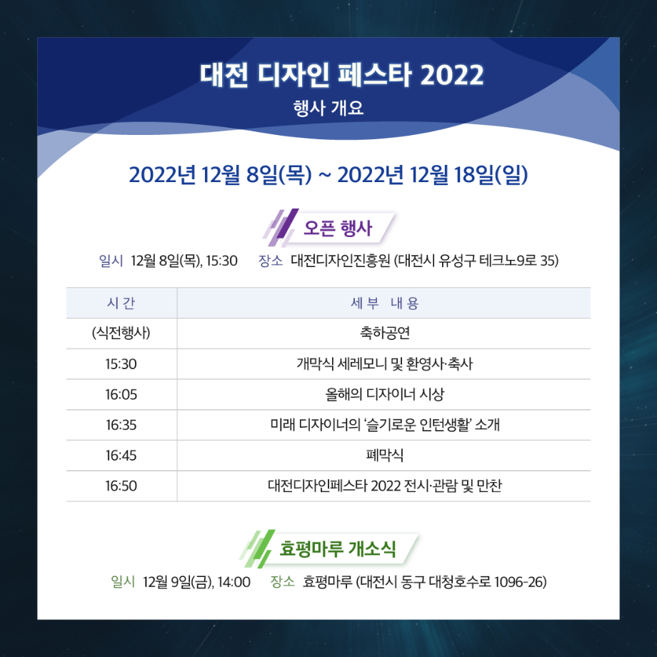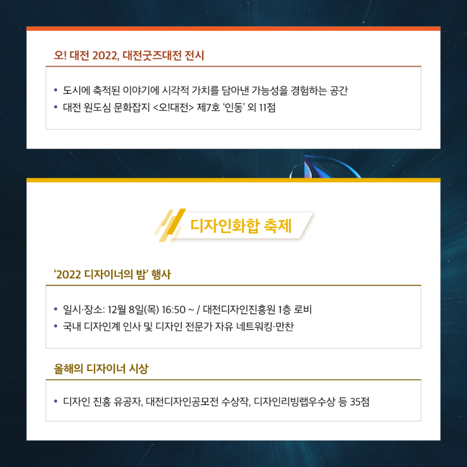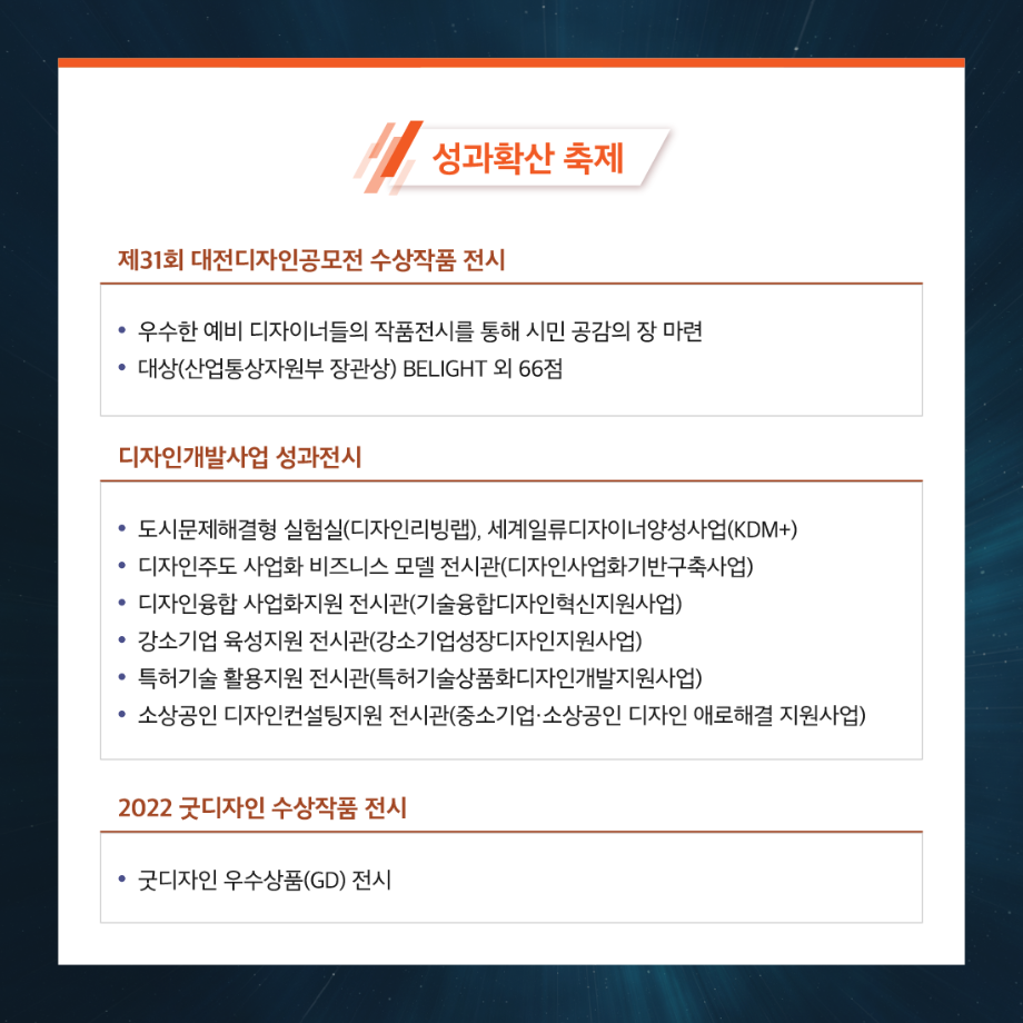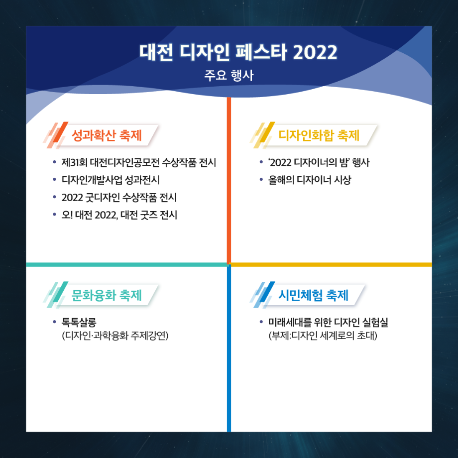본문 시작 홈으로 학과생활 학과소개 교수소개 교과과정 학과생활 홈페이지가이드 사진게시판 공지사항 사진게시판 전공자료실 동아리 학과행사 사진게시판 페이스북 트위터 프린트 [전시회] 2022 대전 디자인 페스타 산업디자인학과 2765 2022-12-01 목록 이전[대학혁신지원사업] 연구역량강화 세미나 _산디과 광Studio 다음 [한국디자인학회] 2022 서울디자인 대학생 워크숍 디자인 학술상 수상 담당부서 : 산업디자인학과 담당자 : - 연락처 : 043-649-1436 최종수정일 : 2024-10-26 만족도조사 만족도 조사 이 페이지에서 제공하는 정보에 대하여 만족하시나요? 매우만족 만족 보통 불만족 매우불만족