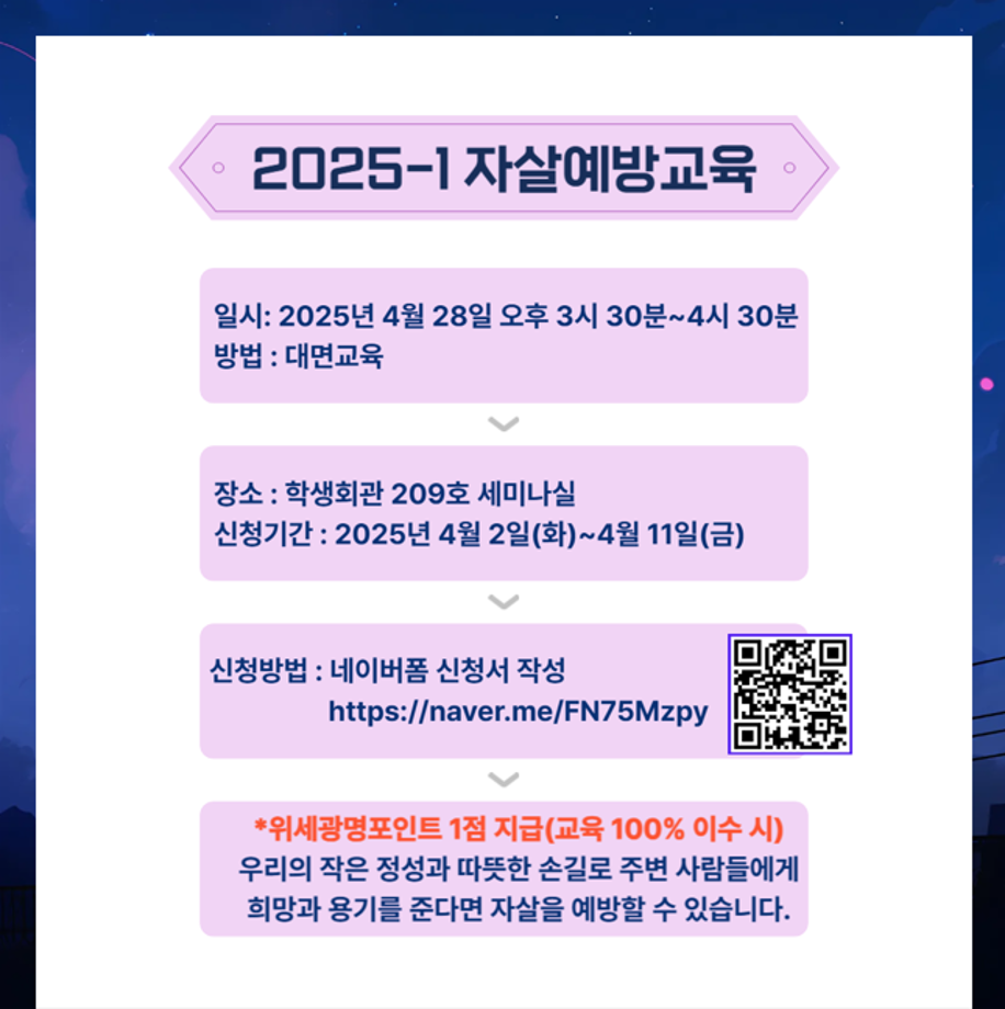 본문 시작 홈으로 학과생활 학과소개 교수소개 교과과정 학과생활 홈페이지가이드 사진게시판 공지사항 사진게시판 전공자료실 동아리 학과행사 사진게시판 페이스북 트위터 프린트 [CHARM케어상담센터] 2025학년도 1학기 자살예방교육 실시 산업디자인학과 1252 2025-04-03 목록 이전[학생처] 제10회 커뮤니티 페스티벌 다음 [산디과] 세명대학교 창업몰 OPEN_학교 기념물 제작 및 판매 담당부서 : 산업디자인학과 담당자 : - 연락처 : 043-649-1436 최종수정일 : 2024-10-26 만족도조사 만족도 조사 이 페이지에서 제공하는 정보에 대하여 만족하시나요? 매우만족 만족 보통 불만족 매우불만족