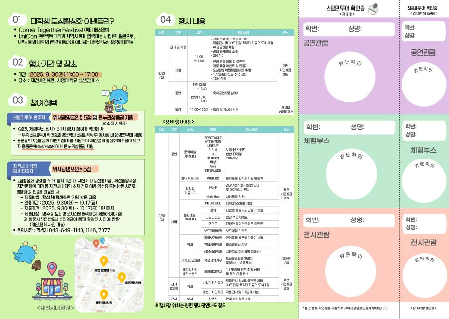 본문 시작 홈으로 학과생활 학과소개 교수소개 교과과정 학과생활 홈페이지가이드 사진게시판 공지사항 사진게시판 전공자료실 동아리 학과행사 사진게시판 페이스북 트위터 프린트 [학생처] 2025 대학생 도심활성화 이벤트[Come Together Festival(씨티페스티벌)] 개최 산업디자인학과 555 2025-09-24 학생처 목록 이전[기념품] 아트앤산업디자인학과 기념품 제작_에코백 다음 [세명대] 청룡체전 체험부스_산디과 동아리 활동 담당부서 : 산업디자인학과 담당자 : - 연락처 : 043-649-1436 최종수정일 : 2024-10-26 만족도조사 만족도 조사 이 페이지에서 제공하는 정보에 대하여 만족하시나요? 매우만족 만족 보통 불만족 매우불만족