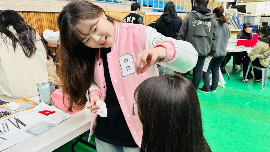 본문 시작 홈으로 커뮤니티 학과소개 교수소개 학과과정 커뮤니티 대학원 홈페이지가이드 포토갤러리 공지사항 채용정보 포토갤러리 Youtube 바로가기 Instargram 바로가기 Blog 바로가기 Facebook 바로가기 포토갤러리 페이스북 트위터 프린트 2024 청소년 빅콘서트, 행운을 부르는 예쁜 속눈썹 만들기! 뷰티케어학과 2146 2024-11-27 예쁜 눈썹 마음에 드시나요 ~!? 뷰티케어학과 학생들의 웃음과 행운을 나눠드리며 예쁜 눈썹까지 선물로 드립니다! 목록 이전다양한 탈색법을 비교해보았어요~ 다음 세명대학교 2025학년도 수시모집 충원합격자 발표/등록 안내