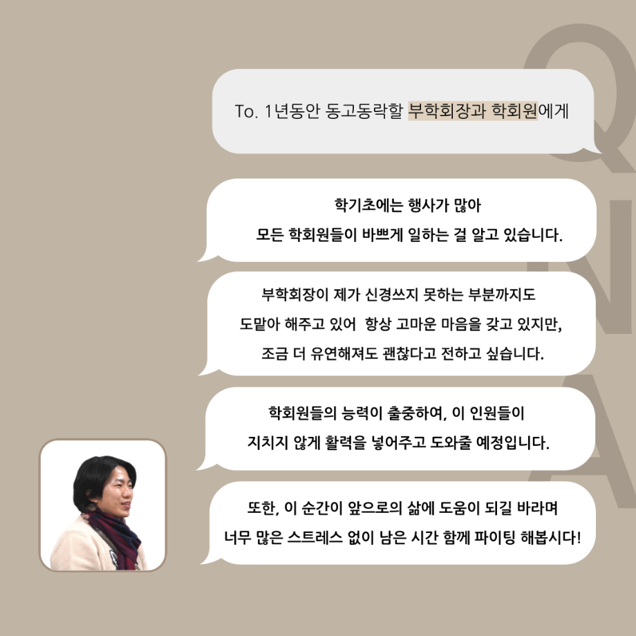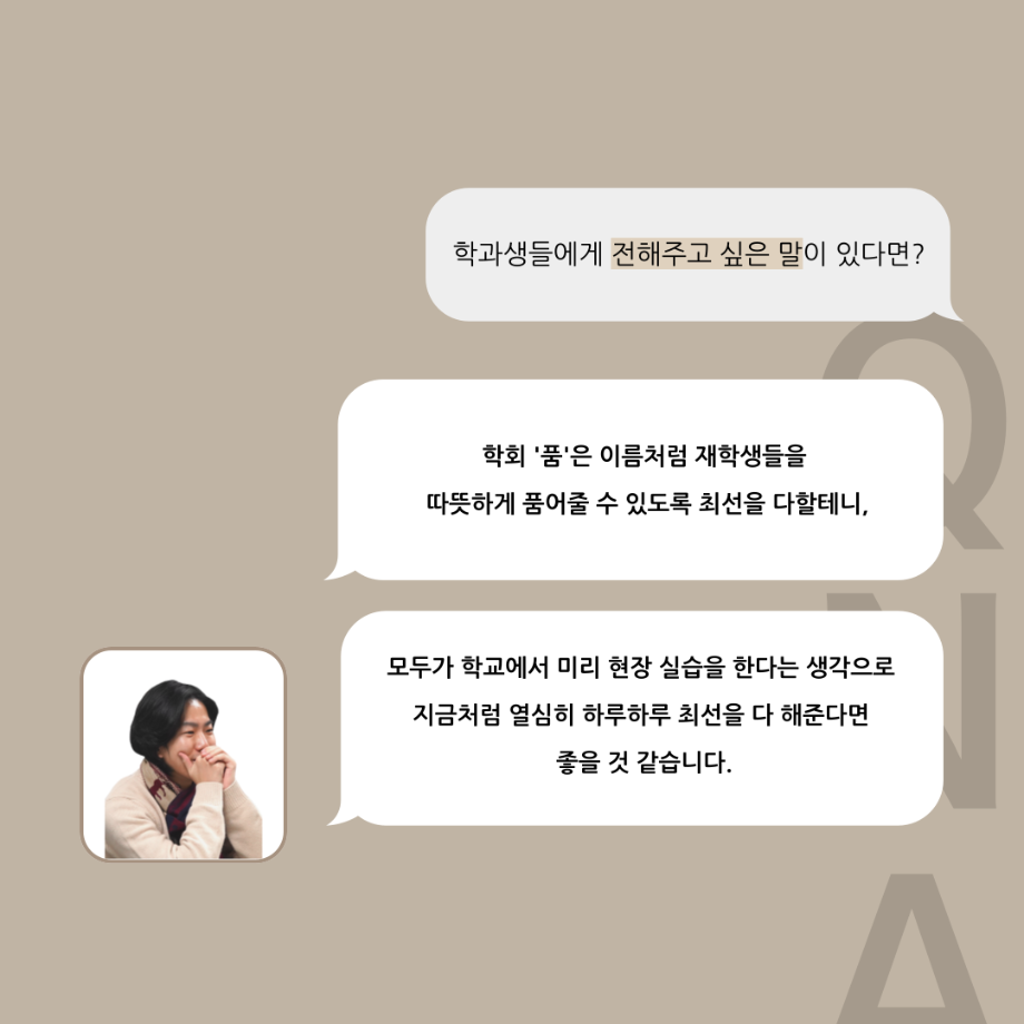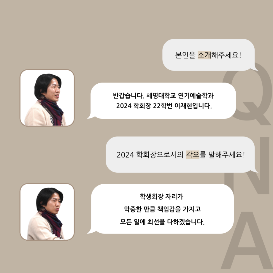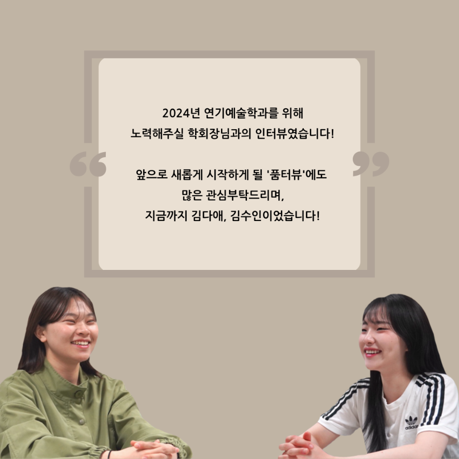 본문 시작 홈으로 커뮤니티 학과소개 입학정보 교수소개 학과과정 커뮤니티 공연예매 안내 홈페이지가이드 포토갤러리 공지사항 포토갤러리 작품DB 동아리 학사일정 학생회 포토갤러리 페이스북 트위터 프린트 '품'위있는 인'터뷰' - 24년도 학회장 <이재현> 연기예술학과 3322 2024-04-30 안녕하십니까. 24년도 학회 ‘품‘ 입니다. 학회 ‘품’의 첫번째 인터뷰로 세명대학교 연기예술학과 24년도 학회장인 이재현 학회장과 인터뷰(질문)하는 시간을 가졌습니다. 학회장으로서의 각오, 방향성 그리고 학과생에게 전하고 싶은 말과 학회에게 남기는 메세지 등을 질문하는 시간을 가졌습니다. 앞으로 있을 인터뷰 컨텐츠인 ‘품터뷰’ 많은 사랑 부탁드립니다. 목록 이전세명대학교 연기예술학과 극장동아리 ‘짜스트’ - 무대, 조명 다음 나의 학습역량 진단 결과 조회하기 [재공지] 2024학년도 학습역량 진단 조회 안내 담당부서 : 연기예술학과 담당자 : - 연락처 : 043-649-1733 최종수정일 : 2024-10-26 만족도조사 만족도 조사 이 페이지에서 제공하는 정보에 대하여 만족하시나요? 매우만족 만족 보통 불만족 매우불만족