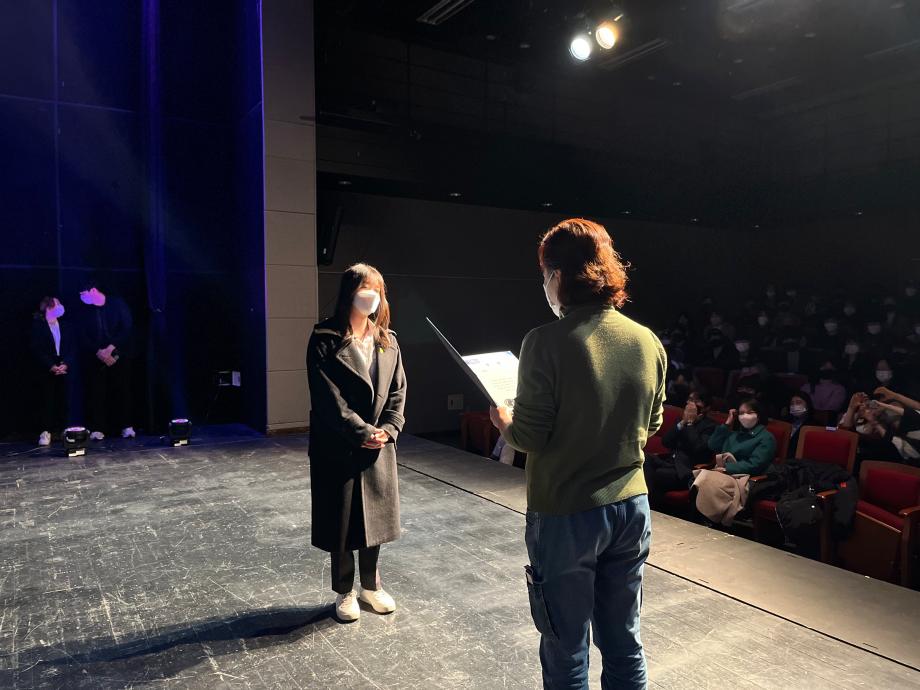 본문 시작 홈으로 커뮤니티 학과소개 입학정보 교수소개 학과과정 커뮤니티 공연예매 안내 홈페이지가이드 포토갤러리 공지사항 포토갤러리 작품DB 동아리 학사일정 학생회 포토갤러리 페이스북 트위터 프린트 2021학년도 2학기 종강총회 연기예술학과 3270 2021-12-09 2021학년도 종강총회가 무사히 마무리 되었습니다. 한해동안 학과를 위해 힘써주신 많은 교수님들과 열심히 달려와준 학생들에게 감사의 말씀을 전합니다. 내년에는 더욱 발전한 세명대학교 연기예술학과로 거듭나기위해 최선을 다하겠습니다! 목록 이전2021학년도 2학기 극장 스텝교육 다음 현대차그룹 대학 연극.뮤지컬 페스티벌 수상 학교 공연 온라인 중계 담당부서 : 연기예술학과 담당자 : - 연락처 : 043-649-1733 최종수정일 : 2024-10-26 만족도조사 만족도 조사 이 페이지에서 제공하는 정보에 대하여 만족하시나요? 매우만족 만족 보통 불만족 매우불만족