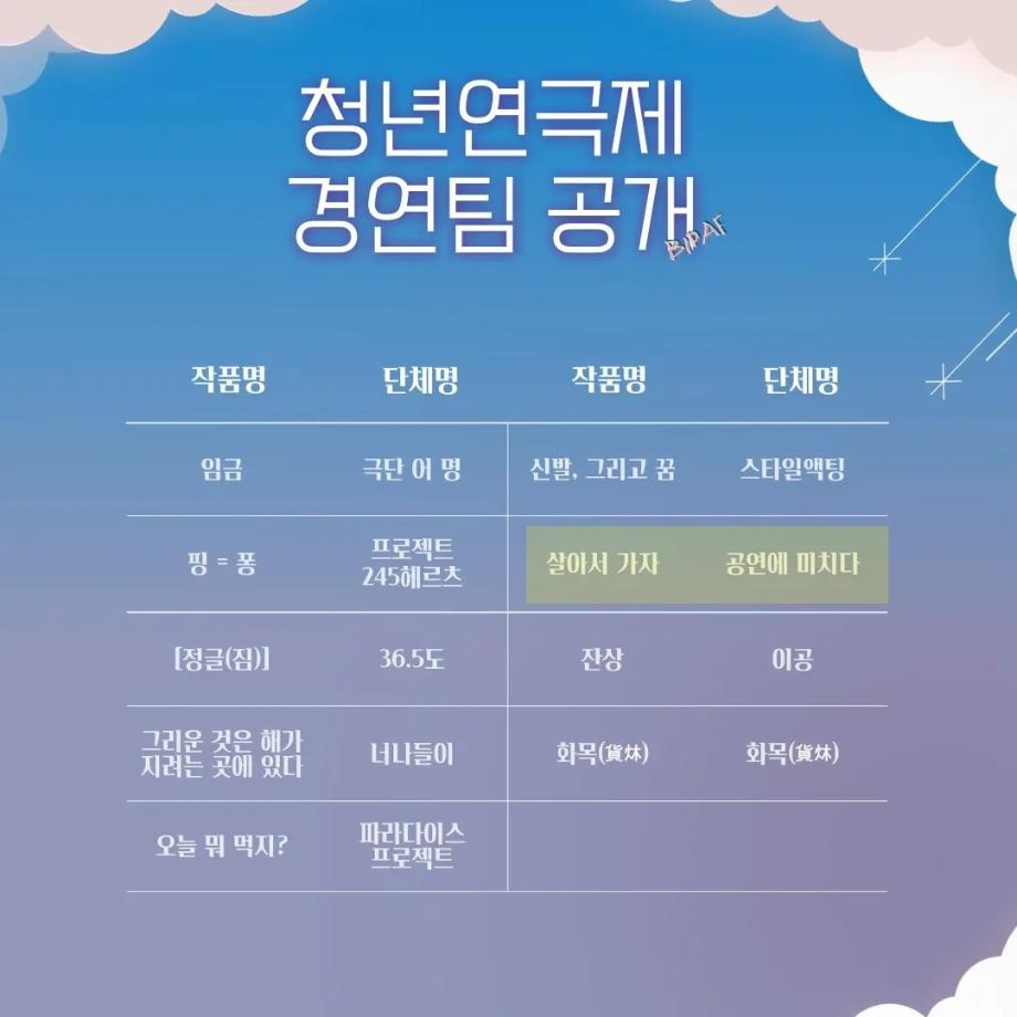 본문 시작 홈으로 커뮤니티 학과소개 입학정보 교수소개 학과과정 커뮤니티 공연예매 안내 홈페이지가이드 포토갤러리 공지사항 포토갤러리 작품DB 동아리 학사일정 학생회 포토갤러리 페이스북 트위터 프린트 🌊2022 제 19회 부산국제연극제 청년연극제 참가작 본선 진출 🫂[살아서 가자]👣 연기예술학과 2918 2022-06-13 🌊2022 제 19회 부산국제연극제 청년연극제 참가작 본선 진출 🫂[살아서 가자]👣 🌺[살아서 가자]는 6.25전쟁을 배경으로하여, 원치않는 전쟁에 참가한 남한과 북한의 어린 청춘들이 소통의 부재로 비극적인 전투를 하게 되는 내용을 다룬 창작극입니다. 👥 이번 청년연극제 참가작인 [살아서 가자]는 신입생들과 2학년 학생들이 액션신과 군무 등 함께 호흡을 맞춰 즐겁게 연습했던 작품입니다!! 목록 이전🗣제 81회 세명대학교 연기예술학과 정기공연 기초연기1 발표🗣 다음 제 82회 세명대학교 연기예술학과 정기공연 중급연기 | 발표 <팔레트>🎨 담당부서 : 연기예술학과 담당자 : - 연락처 : 043-649-1733 최종수정일 : 2024-10-26 만족도조사 만족도 조사 이 페이지에서 제공하는 정보에 대하여 만족하시나요? 매우만족 만족 보통 불만족 매우불만족
