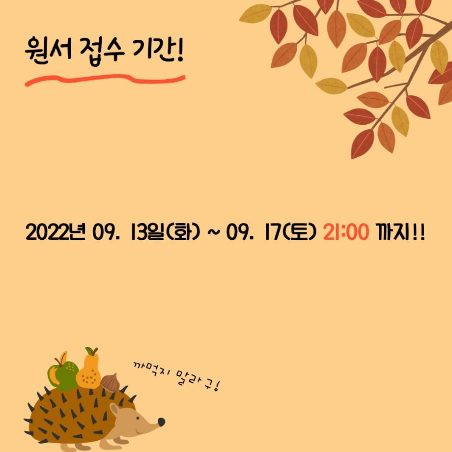 2022. 09. 13 (화) - 09. 17 (토) 21:00까지