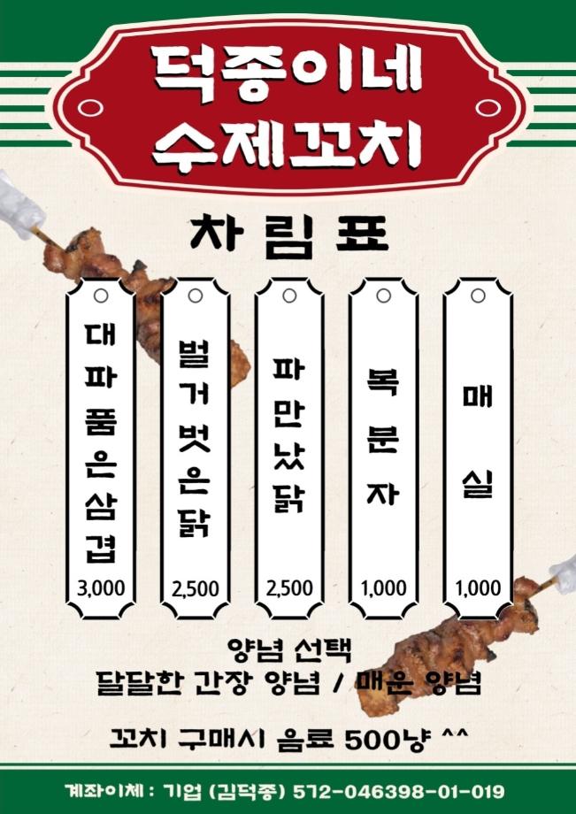 덕종이네 수제꼬치가 2500원~!❤🔥