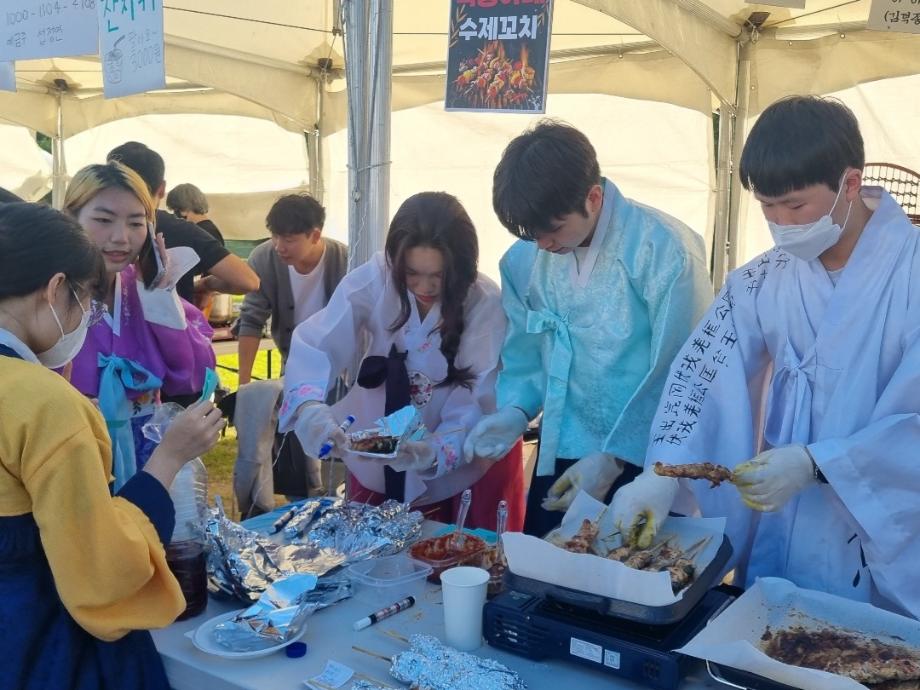덕종이네 수제꼬치는 뭐든지 광장에서 9월 21일에 운영을 했습니다 학생들이 수제로 손질하고 꽂은 꼬치들로 맛있는 먹거리와 한복을 입고 풍부한 볼거리까지 준비를 했었는데요🪁