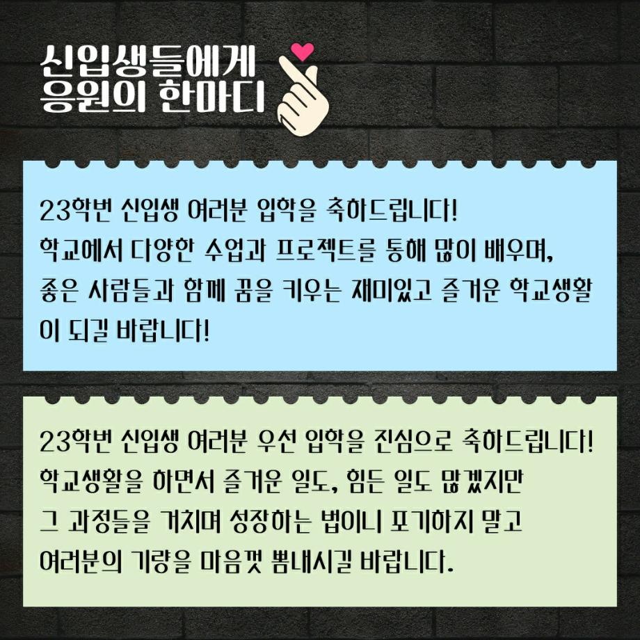 23학번 신입생들을 위한 응원의 메세지도 있으니 꼭 확인해보세요😉😚