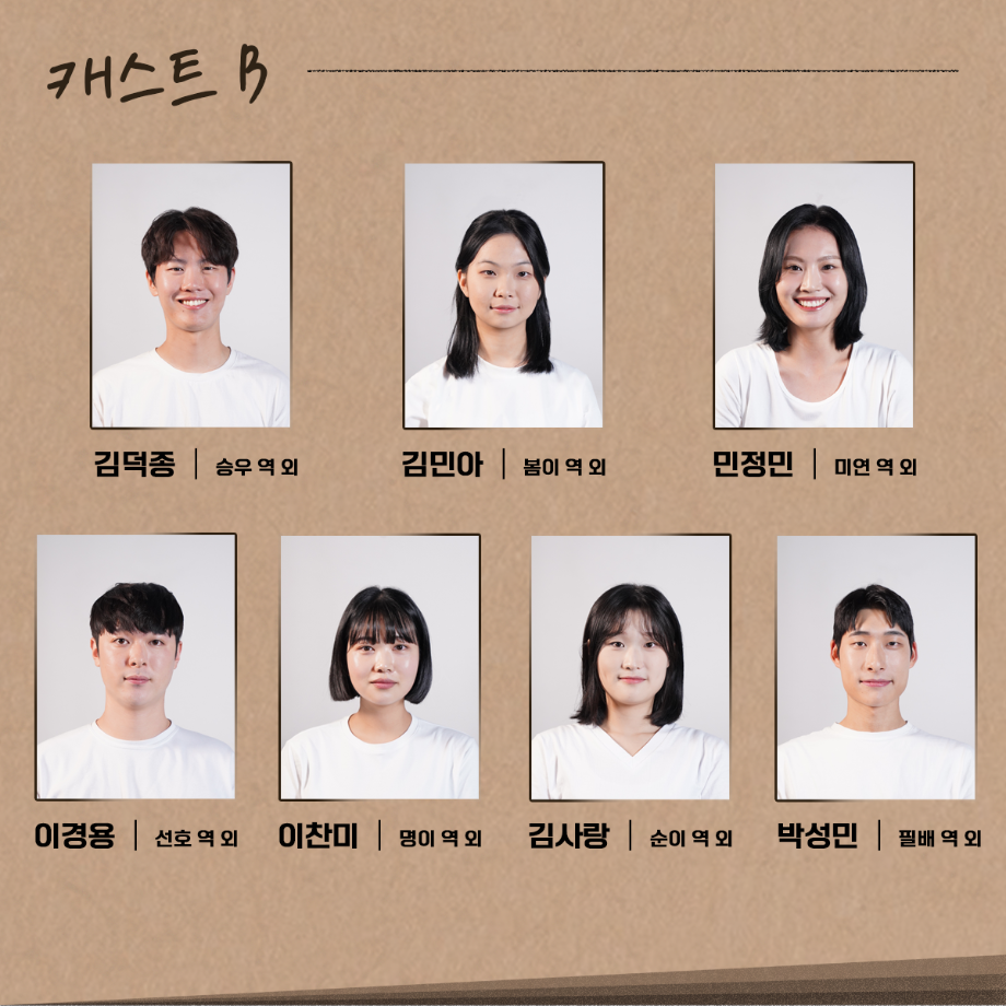 본문 시작 홈으로 커뮤니티 학과소개 입학정보 교수소개 학과과정 커뮤니티 공연예매 안내 홈페이지가이드 포토갤러리 공지사항 포토갤러리 작품DB 동아리 학사일정 학생회 포토갤러리 페이스북 트위터 프린트 제 16회 세명대학교 연기예술학과 졸업작품 <썬샤인의 전사들> 포스터 & 캐스트 연기예술학과 3502 2023-10-31 2023. 11. 02. CAST A 2023. 11. 03. CAST B 2023. 11. 04. CAST A 2023. 11. 05. CAST B 서울 대학로 민송아트홀 1관 목록 이전2023 공연예술 전공자를 위한 취업 특강 다음 학습법 특강 4차 - PPT제작 및 스피치 노하우 담당부서 : 연기예술학과 담당자 : - 연락처 : 043-649-1733 최종수정일 : 2024-10-26 만족도조사 만족도 조사 이 페이지에서 제공하는 정보에 대하여 만족하시나요? 매우만족 만족 보통 불만족 매우불만족