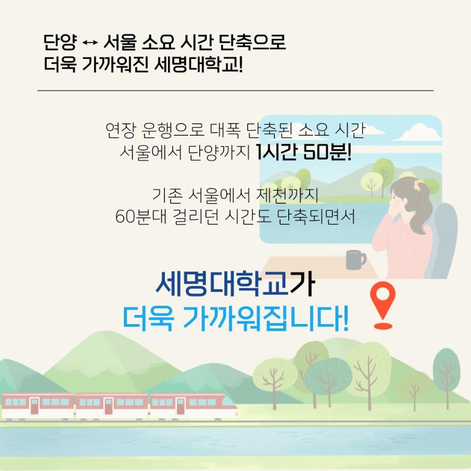 본문 시작 홈으로 커뮤니티 학과소개 입학정보 교수소개 학과과정 커뮤니티 공연예매 안내 홈페이지가이드 포토갤러리 공지사항 포토갤러리 작품DB 동아리 학사일정 학생회 포토갤러리 페이스북 트위터 프린트 더 가까워진 세명대학교 연기예술학과 2935 2024-01-29 지난 29일부터 제천, 단양을 지나는 중앙선 KTX가 서울역까지 연장 된다는 사실. 열차 또한 증차되고, 단양<->서울간 소요 시간도 단축되면서 세명대<->서울간 소요 시간도 단축됩니다. 편리한 통학과 함께 더욱 가까워진 재미있는 경험 가득한 세명대학교 로 오세요. 목록 이전세명대학교 연기예술학과 특강 [박건형 배우님] 다음 세명대학교 연기예술학과 특강 [최진영 배우님] 담당부서 : 연기예술학과 담당자 : - 연락처 : 043-649-1733 최종수정일 : 2024-10-26 만족도조사 만족도 조사 이 페이지에서 제공하는 정보에 대하여 만족하시나요? 매우만족 만족 보통 불만족 매우불만족