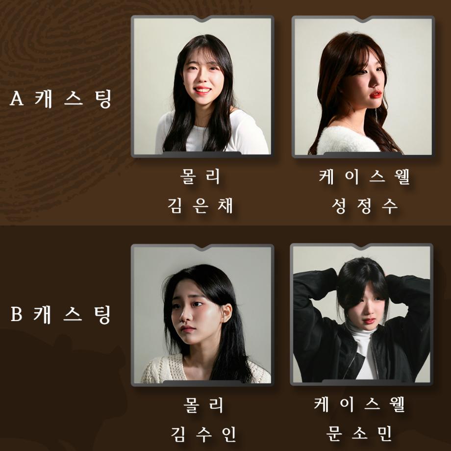 본문 시작 홈으로 커뮤니티 학과소개 입학정보 교수소개 학과과정 커뮤니티 공연예매 안내 홈페이지가이드 포토갤러리 공지사항 포토갤러리 작품DB 동아리 학사일정 학생회 포토갤러리 페이스북 트위터 프린트 연기예술학과 104회 정기공연 동계 프로젝트 <쥐덫> 캐스트 연기예술학과 2993 2024-02-28 “자, 다들 모여보세요. 제가 범인을 찾았습니다.“ - 공연일시 A CAST 03.02(토) 15:00 03.03(일) 18:00 B CAST 03.02(토) 19:00 03.03(일) 14:00 세명대학교 공학관 5층, 태양아트홀 - 첫 번째 작품 | 올모스트 메인 두 번째 작품 | 쥐덫 세 번째 작품 | 천국으로 가는 길 예매링크는 해당 인스타 소개글에서 확인할 수 있습니다. 목록 이전연기예술학과 104회 정기공연 동계 프로젝트 <쥐덫> 다음 연기예술학과 105회 정기공연 동계 프로젝트 <천국으로 가는 길> 프로필 스틸컷 담당부서 : 연기예술학과 담당자 : - 연락처 : 043-649-1733 최종수정일 : 2024-10-26 만족도조사 만족도 조사 이 페이지에서 제공하는 정보에 대하여 만족하시나요? 매우만족 만족 보통 불만족 매우불만족
