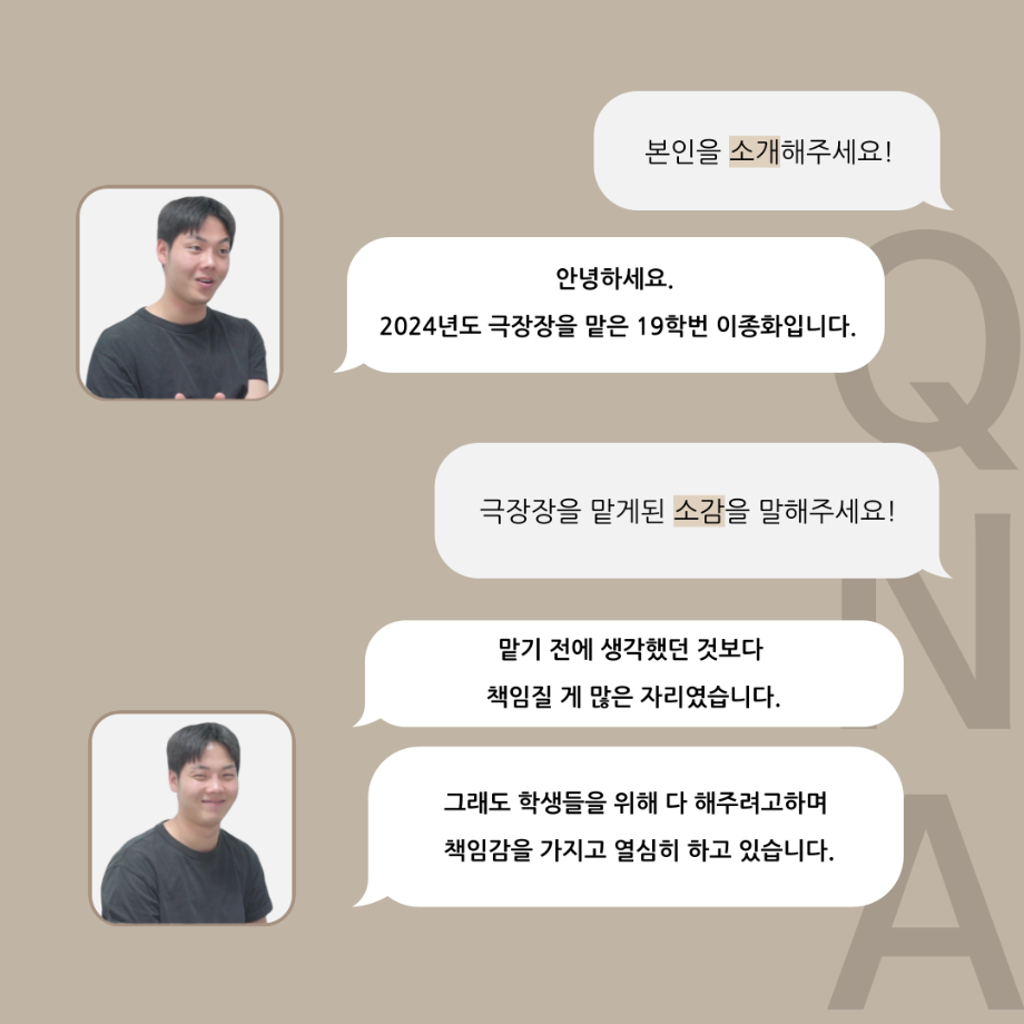 본문 시작 홈으로 커뮤니티 학과소개 입학정보 교수소개 학과과정 커뮤니티 공연예매 안내 홈페이지가이드 포토갤러리 공지사항 포토갤러리 작품DB 동아리 학사일정 학생회 포토갤러리 페이스북 트위터 프린트 '품'위있는 인'터뷰' - 24년도 극장장 <이종화> 연기예술학과 3308 2024-07-12 안녕하십니다 24년도 학회 ‘품‘ 입니다. 학회 ‘품’의 세 번째 인터뷰로 세명대학교 연기예술학과 24학년도 극장장인 이종화 학우와 인터뷰 하는 시간을 가졌습니다. 극장장을 맡게된 소감과 극장은 어떤 의미가 있는지, 파트장과 학과생에게 전하고 싶은 말 등을 질문하는 시간을 가졌습니다. 앞으로 있을 인터뷰 컨텐츠인 ‘품터뷰’ 많은 사랑 부탁드립니다. 목록 이전'품'위있는 인'터뷰' - 24년도 부학회장 <최가람> 다음 제5회 대한민국 신직업·미래직업 아이디어 공모전 담당부서 : 연기예술학과 담당자 : - 연락처 : 043-649-1733 최종수정일 : 2024-10-26 만족도조사 만족도 조사 이 페이지에서 제공하는 정보에 대하여 만족하시나요? 매우만족 만족 보통 불만족 매우불만족