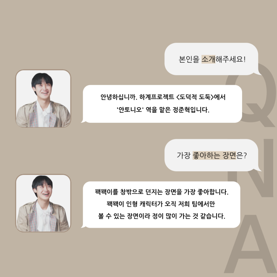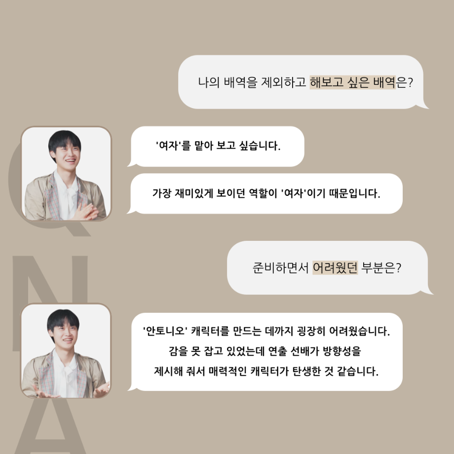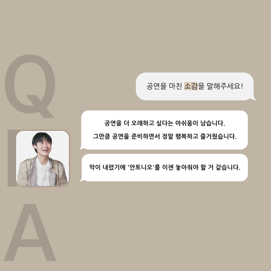본문 시작 홈으로 커뮤니티 학과소개 입학정보 교수소개 학과과정 커뮤니티 공연예매 안내 홈페이지가이드 포토갤러리 공지사항 포토갤러리 작품DB 동아리 학사일정 학생회 포토갤러리 페이스북 트위터 프린트 ‘품’위있는 인‘터뷰’ - 하계프로젝트 안토니오役 <정준혁> 연기예술학과 3171 2024-09-19 안녕하십니까. 24년도 학회 ‘품’ 입니다. 학회 ‘품’의 열 다섯 번째 인터뷰로 세명대학교 연기예술학과 하계프로젝트 <도덕적 도둑> 의 안토니오 역인 정준혁 학우와 인터뷰 하는 시간을 가졌습니다. 가장 좋아하는 장면, 자신의 배역을 제외하고 해보고 싶은 배역 그리고 준비하면서 어려웠던 부분과 공연을 마친 소감 등에 대해 인터뷰 하는 시간을 가졌습니다. 앞으로 있을 인터뷰 컨텐츠인 ‘품터뷰’ 많은 사랑 부탁드립니다. 목록 이전‘품’위있는 인‘터뷰’ - 하계프로젝트 도둑役 <박상훈> 다음 연기예술학과, 충북도립극단과 업무협약(MOU) 체결 담당부서 : 연기예술학과 담당자 : - 연락처 : 043-649-1733 최종수정일 : 2024-10-26 만족도조사 만족도 조사 이 페이지에서 제공하는 정보에 대하여 만족하시나요? 매우만족 만족 보통 불만족 매우불만족