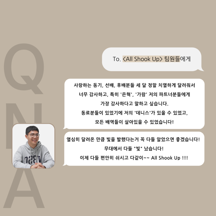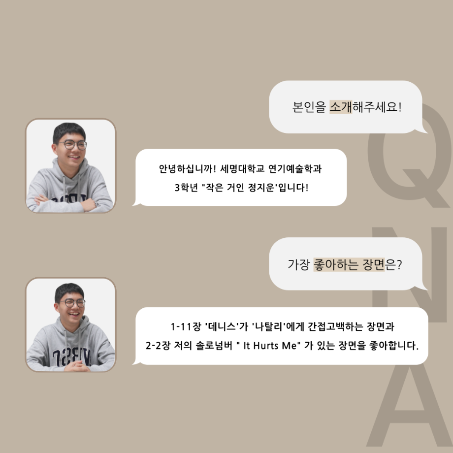 본문 시작 홈으로 커뮤니티 학과소개 입학정보 교수소개 학과과정 커뮤니티 공연예매 안내 홈페이지가이드 포토갤러리 공지사항 포토갤러리 작품DB 동아리 학사일정 학생회 포토갤러리 페이스북 트위터 프린트 ‘품’ 위 있는 인 ‘터뷰’ - 뮤지컬 제작실습 <올슉업> 데니스정지운 카드 뉴스 연기예술학과 2833 2025-01-17 . 목록 이전‘품’ 위 있는 인 ‘터뷰’ - 뮤지컬 제작실습 <올슉업> 나탈리 안수연 카드 뉴스 다음 2024학년도 공연영상학과 (현 연기예술학과) 학과수여식 담당부서 : 연기예술학과 담당자 : - 연락처 : 043-649-1733 최종수정일 : 2024-10-26 만족도조사 만족도 조사 이 페이지에서 제공하는 정보에 대하여 만족하시나요? 매우만족 만족 보통 불만족 매우불만족