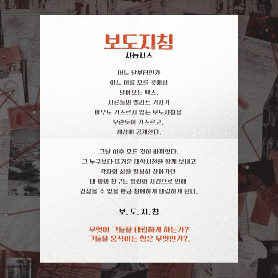 본문 시작 홈으로 커뮤니티 학과소개 입학정보 교수소개 학과과정 커뮤니티 공연예매 안내 홈페이지가이드 포토갤러리 공지사항 포토갤러리 작품DB 동아리 학사일정 학생회 포토갤러리 페이스북 트위터 프린트 제 113회 세명대학교 연기예술학과 동계 프로젝트 <보도지침> 작품소개 연기예술학과 2221 2025-02-19 . 목록 이전2024학년도 공연영상학과 (현 연기예술학과) 학과수여식 다음 제 113회 세명대학교 연기예술학과 동계 프로젝트 <보도지침> 스태프 담당부서 : 연기예술학과 담당자 : - 연락처 : 043-649-1733 최종수정일 : 2024-10-26 만족도조사 만족도 조사 이 페이지에서 제공하는 정보에 대하여 만족하시나요? 매우만족 만족 보통 불만족 매우불만족