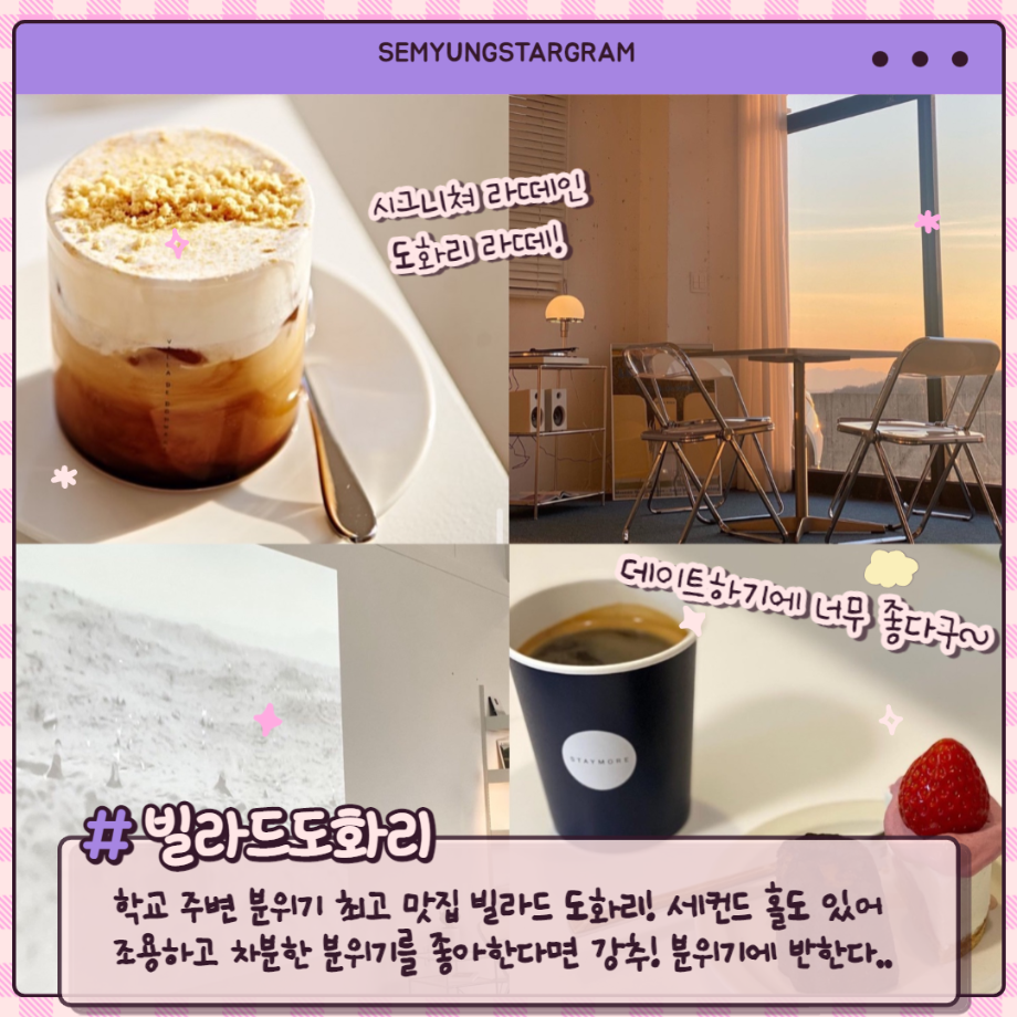 본문 시작 홈으로 학과소식 학과소개 취업정보 교육과정 학과소식 홈페이지가이드 포토갤러리 공지사항 포토갤러리 학과이야기 학과행사 포토갤러리 페이스북 트위터 프린트 세명대생이라면 꼭 가야할 카페리스트 총정리 회계세무학과 1810 2022-02-08 세명대생이라면 꼭 가야할 카페리스트 총정리 목록 이전대학생이 되면 달라지는 것들 다음 세명대학교 ROTC 담당부서 : 회계세무학과 담당자 : - 연락처 : 043-649-1244 최종수정일 : 2024-10-26 만족도조사 만족도 조사 이 페이지에서 제공하는 정보에 대하여 만족하시나요? 매우만족 만족 보통 불만족 매우불만족