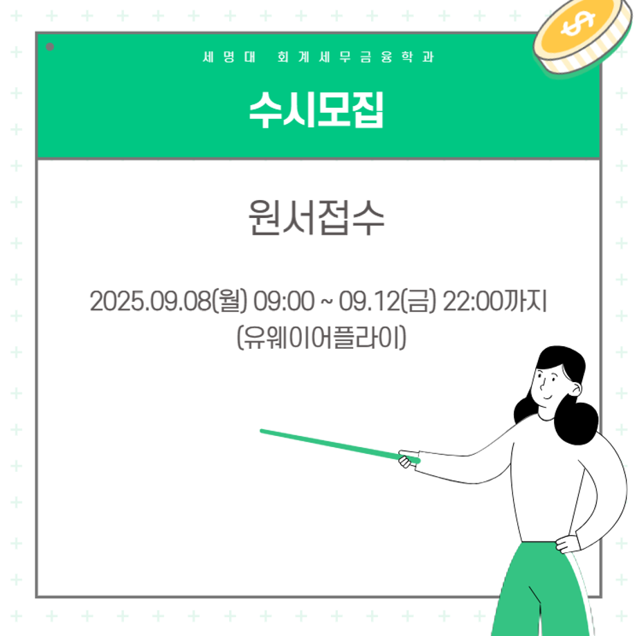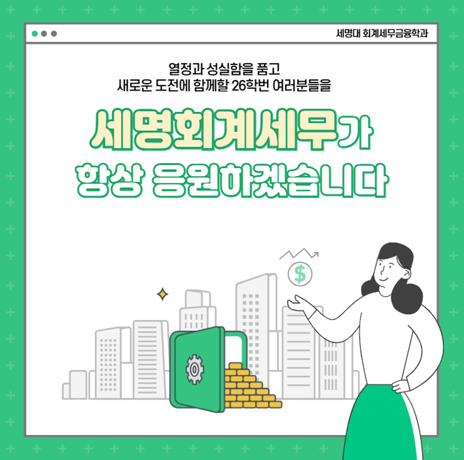 본문 시작 홈으로 학과소식 학과소개 취업정보 교육과정 학과소식 홈페이지가이드 포토갤러리 공지사항 포토갤러리 학과이야기 학과행사 포토갤러리 페이스북 트위터 프린트 💙2026학년도 회계세무금융학과 신입생모집 카드뉴스💙 회계세무금융학과 587 2025-09-09 2026학년도 회계세무금융학과 신입생모집 카드뉴스 목록 이전9월 학사일정 다음 💙세명대 회계세무금융학과 진로 로드맵💙 담당부서 : 회계세무학과 담당자 : - 연락처 : 043-649-1244 최종수정일 : 2024-10-26 만족도조사 만족도 조사 이 페이지에서 제공하는 정보에 대하여 만족하시나요? 매우만족 만족 보통 불만족 매우불만족
