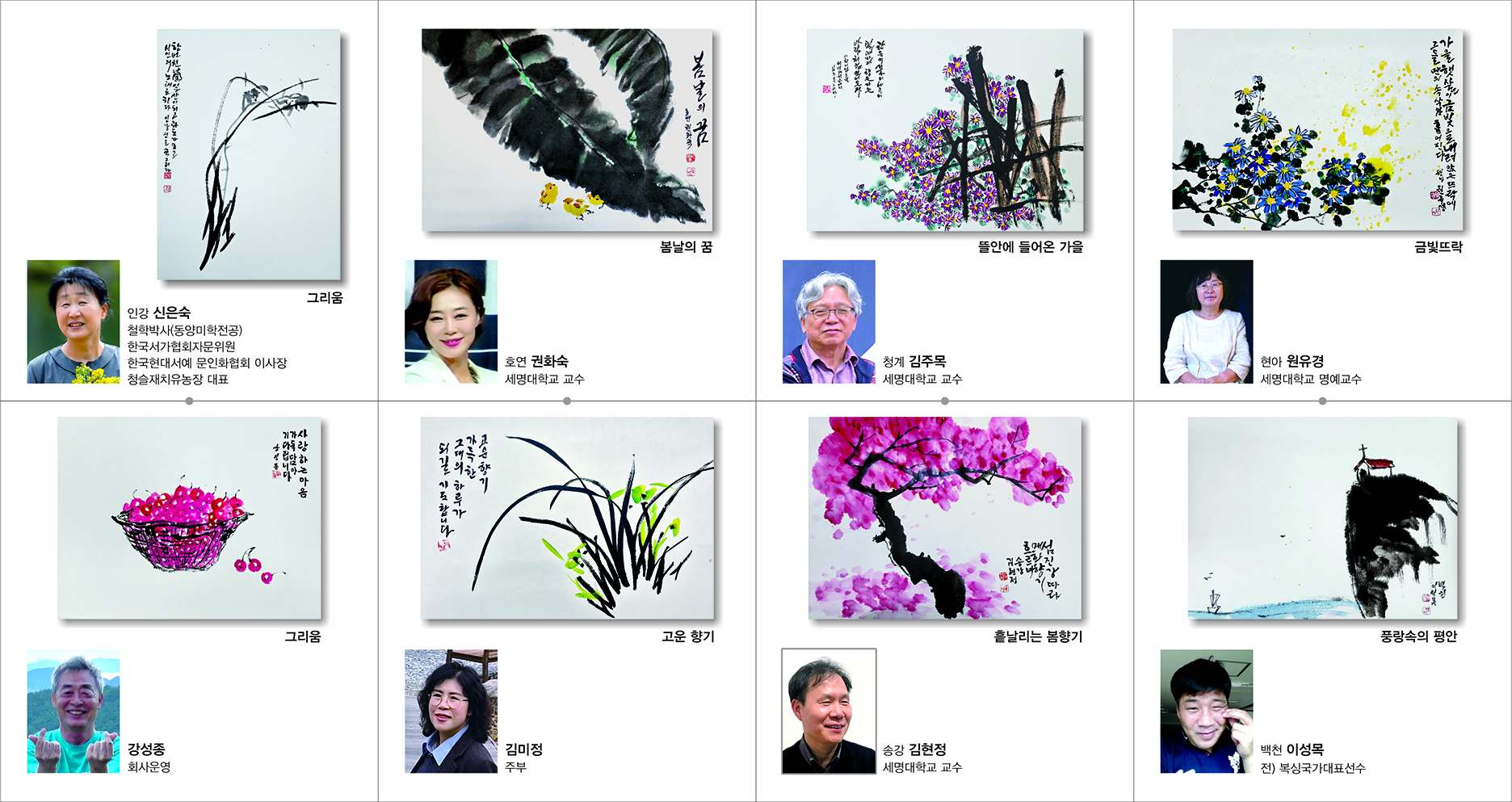 본문 시작 홈으로 MCC News 학과소개 교수소개 학과과정 MCC News MCC SNS 홈페이지가이드 교수 및 졸업생 학과 및 재학생 교수 및 졸업생 미디어 정보통 교수 및 졸업생 페이스북 트위터 프린트 권화숙 교수님 향기로운 삶, 문인화 전시회 안내 미디어콘텐츠창작학과 1135 2025-12-04 향기로운 삶,문인화' 강좌 수강생들의 그동안의 배움과 성과를 공유하는 2025년 제5회 문인화전 – 「여백의 시간을 거닐다 II」 전시회를 개최합니다. 📍 전시 안내 [일시] 개막식: 2025년 12월 4일(목) 16:00 전시기간: 2025년 12월 4일(목) 16:00–18:00 2025년 12월 5일(금)–12월 8일(월) 10:00–17:00 [장소] 제천시민회관 2층 전시실(충북 제천시 의림대로 125) 목록 이전권화숙 교수님, 공연 「허재비고블린의 꿈」 출연 다음 권화숙 교수님 희곡 빨간우체통 공연 안내 담당부서 : 미디어콘텐츠창작학과 담당자 : - 연락처 : 043-649-1741 최종수정일 : 2024-10-26 만족도조사 만족도 조사 이 페이지에서 제공하는 정보에 대하여 만족하시나요? 매우만족 만족 보통 불만족 매우불만족