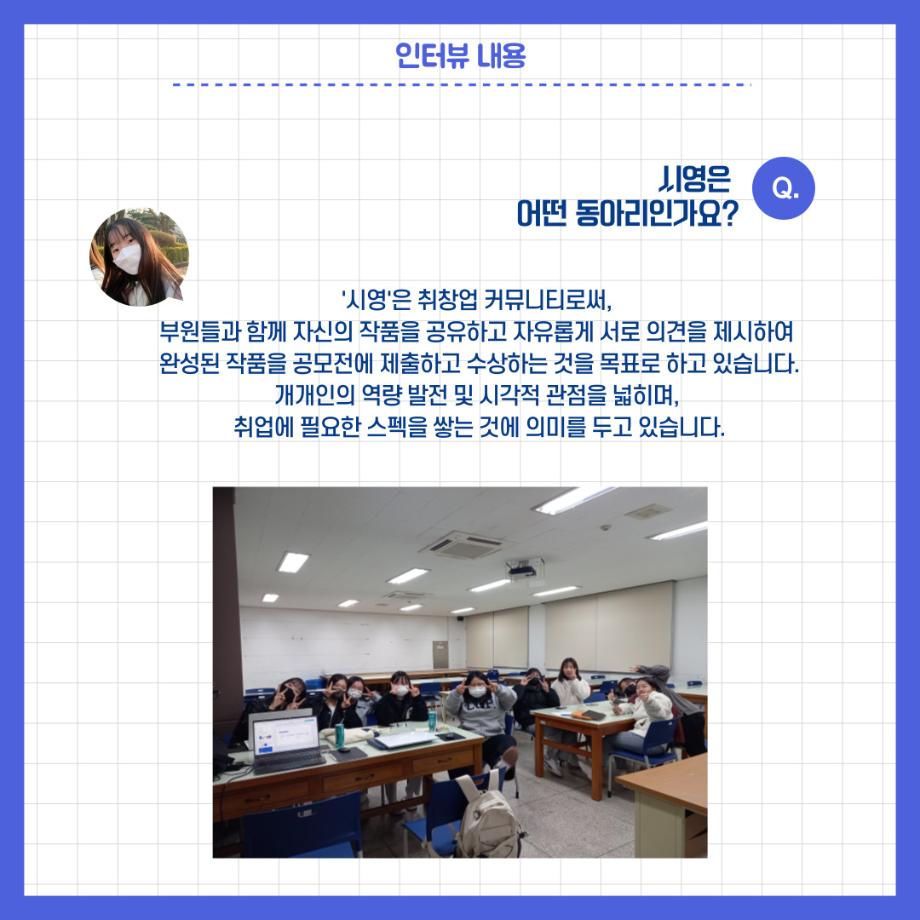 본문 시작 홈으로 학과자랑 학과소개 학과과정 시영소식 입학/취업 AI 학과자랑 SNS소통 홈페이지가이드 공모전 동아리 학과자랑 갤러리 공모전 동아리 졸업전시회 DesingN_us 외 DesingN_us 외 DesingN_us 외 페이스북 트위터 프린트 시각영상디자인학과 동아리 소개_시영 시각영상디자인학과 2174 2023-05-15 목록 이전2022년도 상반기 공모전 우수 수상작 다음 시각영상디자인학과 동아리 소개_미려 담당부서 : 시각영상디자인학과 담당자 : - 연락처 : 043-649-1726 최종수정일 : 2024-10-26 만족도조사 만족도 조사 이 페이지에서 제공하는 정보에 대하여 만족하시나요? 매우만족 만족 보통 불만족 매우불만족