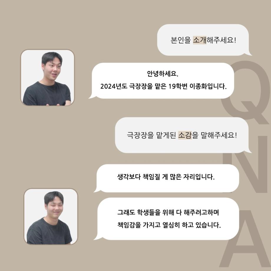 본문 시작 홈으로 커뮤니티 학과소개 입학정보 교수소개 학과과정 커뮤니티 공연예매 안내 홈페이지가이드 동아리 공지사항 포토갤러리 작품DB 동아리 학사일정 학생회 극장 스탭 동아리 무용 동아리 뮤지컬 동아리 극장 스탭 동아리 배우 훈련 동아리 극장 스탭 동아리 페이스북 트위터 프린트 ’품‘위있는 인’터뷰‘ - 24년도 극장장 <이종화> 연기예술학과 2494 2024-07-12 안녕하십니다. 24년도 학회 ‘품‘ 입니다. 학회 ‘품’의 세 번째 인터뷰로 세명대학교 연기예술학과 24학년도 극장장인 이종화 학우와 인터뷰 하는 시간을 가졌습니다. 극장장을 맡게된 소감과 극장은 어떤 의미가 있는지, 파트장과 학과생에게 전하고 싶은 말 등을 질문하는 시간을 가졌습니다. 앞으로 있을 인터뷰 컨텐츠인 ‘품터뷰’ 많은 사랑 부탁드립니다. 목록 이전세명대학교 연기예술학과 극장동아리 ‘짜스트’ - 무대, 조명 다음 ’품‘위있는 인’터뷰‘ - 24년도 무대장 <장보배> 만족도조사 만족도 조사 이 페이지에서 제공하는 정보에 대하여 만족하시나요? 매우만족 만족 보통 불만족 매우불만족