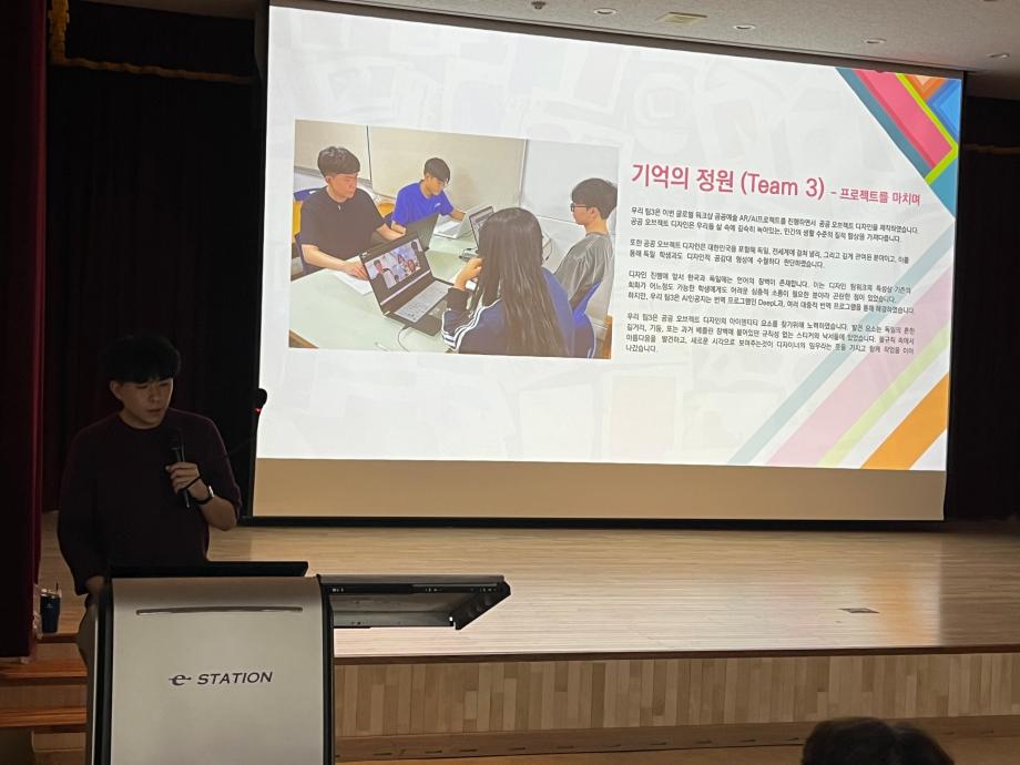 민송도서관 콘텐츠홀에서 각 스튜디오별로 현재 진행 중인 프로젝트 중간 보고 작품 발표를 진행하였습니다