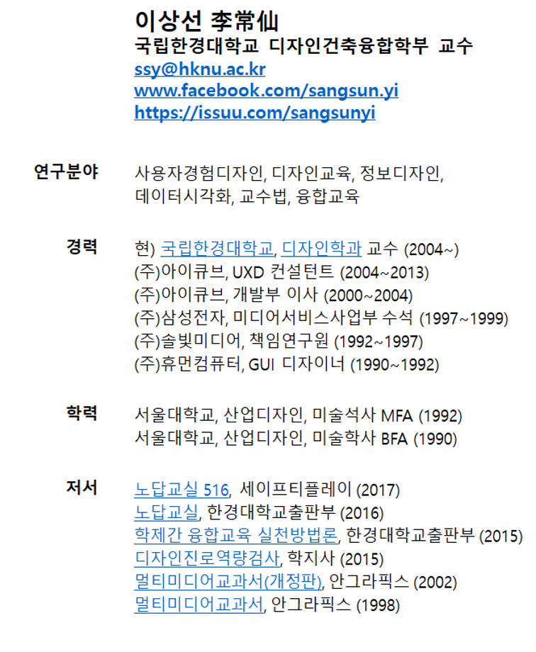 본문 시작 홈으로 시영소식 학과소개 학과과정 시영소식 입학/취업 AI 학과자랑 SNS소통 홈페이지가이드 학과행사 공지사항 학과행사 공모전 학생 인터뷰 학과행사 페이스북 트위터 프린트 시각실무체험 2022년도 학술특강 1 시각영상디자인학과 2759 2022-03-03 한경대 사용자경험 디자인산학협력 사례 일시 : 2022년 3월 15일 11시 디자인관 501호 이상선 교수님 (국립 한경대 디자인학과) 목록 이전강원랜드 하이원 사인시스템 특강 다음 (특강)병원의 서비스디자인 어떻게 시작할까? 연세대학교 산업디자인전공 이주명 교수님 담당부서 : 시각영상디자인학과 담당자 : - 연락처 : 043-649-1726 최종수정일 : 2024-10-26 만족도조사 만족도 조사 이 페이지에서 제공하는 정보에 대하여 만족하시나요? 매우만족 만족 보통 불만족 매우불만족