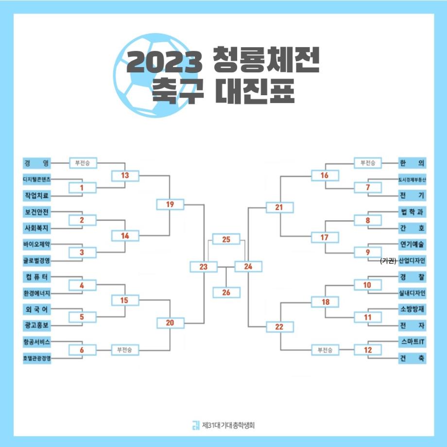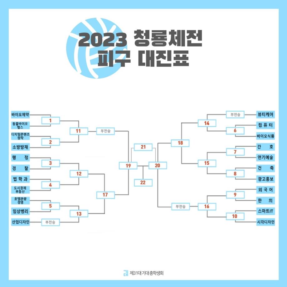 본문 시작 홈으로 시영소식 학과소개 학과과정 시영소식 입학/취업 AI 학과자랑 SNS소통 홈페이지가이드 학과행사 공지사항 학과행사 공모전 학생 인터뷰 학과행사 페이스북 트위터 프린트 2023년도 세명대학교 청룡체전 대진표 공개! 시각영상디자인학과 2056 2023-05-04 목록 이전(특강) 2023년도 시각실무 특강 <AR Artivive&Adobe Aero 프로그램 학습> 다음 2023년도 시각영상디자인학과 청룡체전 연습 담당부서 : 시각영상디자인학과 담당자 : - 연락처 : 043-649-1726 최종수정일 : 2024-10-26 만족도조사 만족도 조사 이 페이지에서 제공하는 정보에 대하여 만족하시나요? 매우만족 만족 보통 불만족 매우불만족