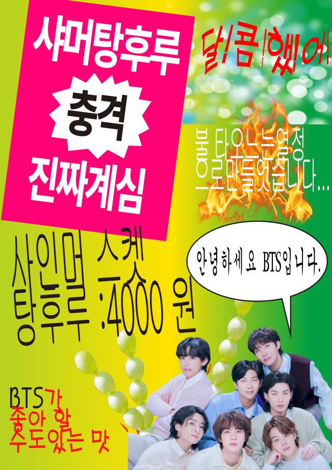 본문 시작 홈으로 시영소식 학과소개 학과과정 시영소식 입학/취업 AI 학과자랑 SNS소통 홈페이지가이드 학과행사 공지사항 학과행사 공모전 학생 인터뷰 학과행사 페이스북 트위터 프린트 청룡축전 먹거리부스 시각영상디자인학과 2354 2023-09-19 청룡축전 2023. 09. 20 (수) ~ 2023. 09. 21 (목) 먹거리부스에서 탕후루(통귤, 샤인머스캣, 토마토)를 판매합니다! 이벤트도 있으니 많은 관심과 사랑 부탁드립니다! 목록 이전2023학년도 인문예술대 제천시자원봉사센터 프리마켓 다음 청룡축전 먹거리부스 마무리 담당부서 : 시각영상디자인학과 담당자 : - 연락처 : 043-649-1726 최종수정일 : 2024-10-26 만족도조사 만족도 조사 이 페이지에서 제공하는 정보에 대하여 만족하시나요? 매우만족 만족 보통 불만족 매우불만족