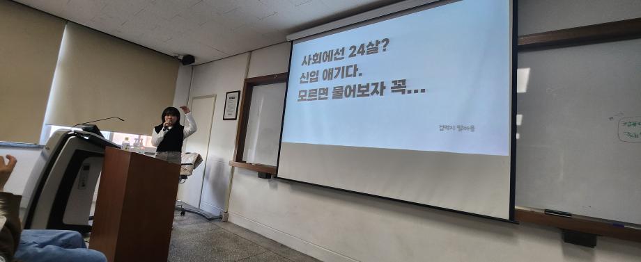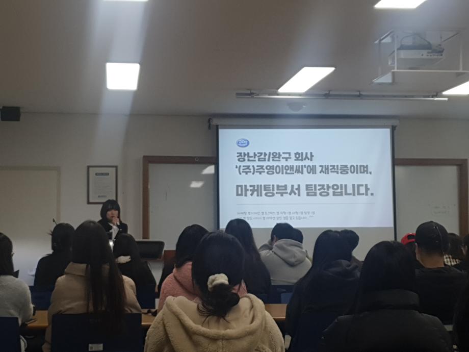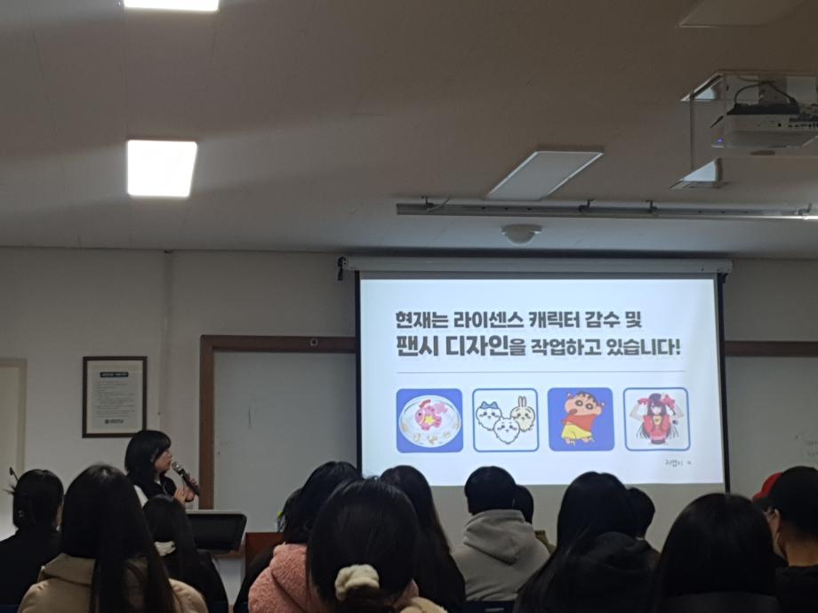 평소 우리가 아무럴지 않게 구입하던 캐릭터의 문구를 담당하고 디자인하는 선배님의 현장 후기, 그리고 면접에서 시선 사로잡는 법, 인간관계에서 멘탈잡는 법, 회사 내에서 예쁨 받는 법 등 취업이 어렵지 않은 이유를 들으니 너무 신기하고 새로웠으며 따끈따끈한 취업후기로 후배들에게 도움이 되었으며 재미있는 시간이었습니다!