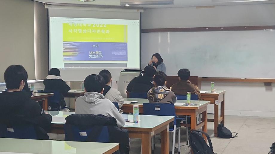 본문 시작 홈으로 시영소식 학과소개 학과과정 시영소식 입학/취업 AI 학과자랑 SNS소통 홈페이지가이드 학과행사 공지사항 학과행사 공모전 학생 인터뷰 학과행사 페이스북 트위터 프린트 세명고 전공체험(12.18.수) 시각영상디자인학과 1719 2024-12-19 세명고 전공체험(12.18.수) 2024. 12. 18.(수), 13:30 ~ 15:30 2학년 재학생 22명이 본 학과에 방문하여 '기초 시각디자인 수업 체험' 시간을 가졋습니다 목록 이전세명콘텐츠스쿨(SMCS) 가을 정기 전시회 다음 2024학년도 2학기 총장표창 수여식 담당부서 : 시각영상디자인학과 담당자 : - 연락처 : 043-649-1726 최종수정일 : 2024-10-26 만족도조사 만족도 조사 이 페이지에서 제공하는 정보에 대하여 만족하시나요? 매우만족 만족 보통 불만족 매우불만족