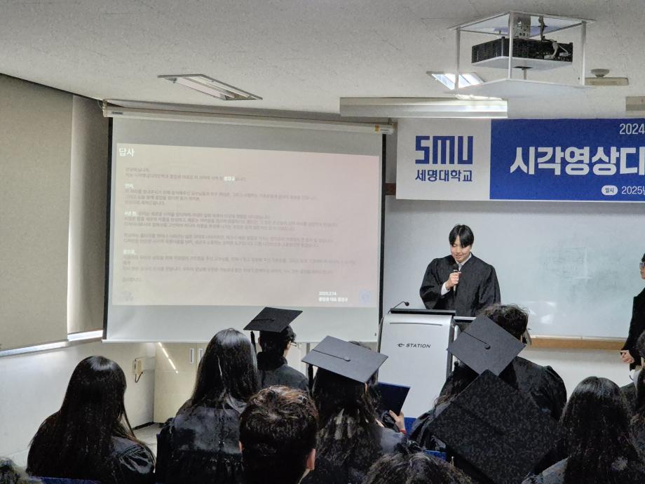 본문 시작 홈으로 시영소식 학과소개 학과과정 시영소식 입학/취업 AI 학과자랑 SNS소통 홈페이지가이드 학과행사 공지사항 학과행사 공모전 학생 인터뷰 학과행사 페이스북 트위터 프린트 2024학년도 세명대학교 학위수여식 시각영상디자인학과 1631 2025-02-15 2025. 2. 14(금) 시각영상디자인학과 학위수여식이 진행되었습니다 4학년 졸업생들과 학부모님 지인들이 많이 참여하고 선배후배들의 송사와 답사 그리고 인문대(7개 학과가 속한) 전체 수석 '박수빈'학생과 학과 수석 '송윤진'학생의 수상으로 더욱 빛나는 행사가 되었습니다. 모두모두 졸업 축하합니다. 목록 이전AI 콘텐츠연구소 전시 안내 다음 2025년 2월 24일 시각영상디자인학과 꿈설계학기 행사 담당부서 : 시각영상디자인학과 담당자 : - 연락처 : 043-649-1726 최종수정일 : 2024-10-26 만족도조사 만족도 조사 이 페이지에서 제공하는 정보에 대하여 만족하시나요? 매우만족 만족 보통 불만족 매우불만족