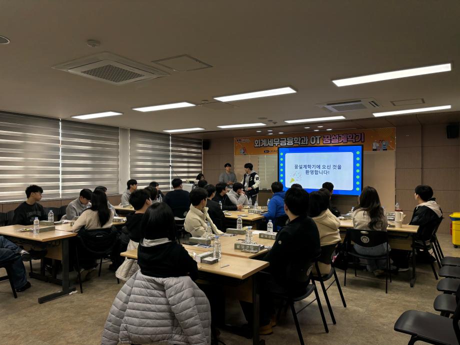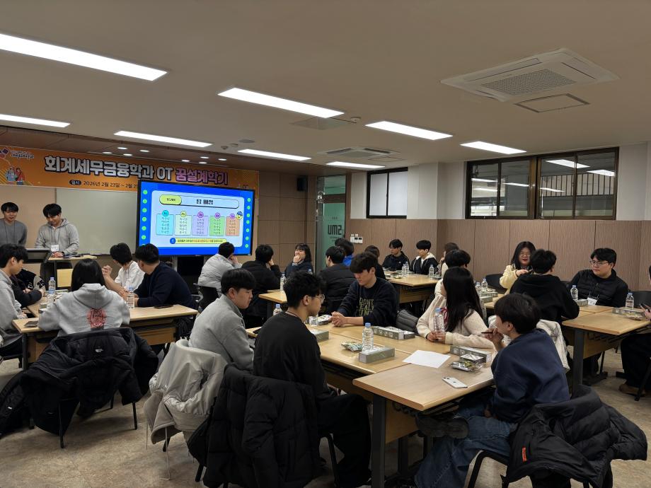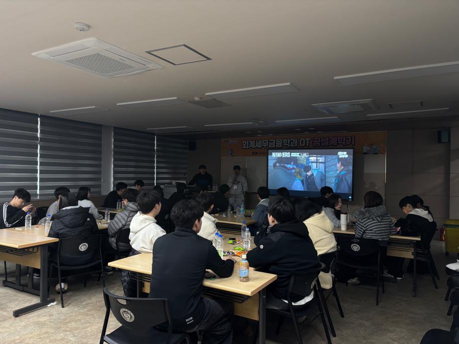 본문 시작 홈으로 학과소식 학과소개 취업정보 교육과정 학과소식 홈페이지가이드 학과행사 공지사항 포토갤러리 학과이야기 학과행사 학과행사 페이스북 트위터 프린트 2026 회계세무금융학과 꿈설계학기 회계세무금융학과 87 2026-02-26 2026.02.23(월)~2026.02.25(수) 회계세무금융학과 꿈설계학기를 진행하였습니다! 회계세무금융학과 학생분들 입학을 축하드립니다❤️ 목록 이전2025학년도 2학기 기말고사 간식사업 다음 회계세무금융학과 개강파티 만족도조사 만족도 조사 이 페이지에서 제공하는 정보에 대하여 만족하시나요? 매우만족 만족 보통 불만족 매우불만족