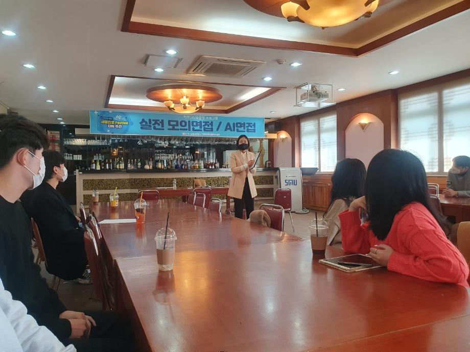 본문 시작 홈으로 학과소개 커뮤니티 학과소개 교육 홈페이지가이드 학과행사 학과장인사말 교수소개 학과행사 학과행사 페이스북 트위터 프린트 2022년 호텔경영학과 실전모의 면접/ AI면접 호텔경영학과 4247 2022-11-28 2022년 호텔경영학과 실전모의 면접/ AI면접 목록 이전2022년 호텔경영학과 호텔투어 다음 2022년 2학기 제6회 사회과학대회 토론대회 장려상 수상 만족도조사 만족도 조사 이 페이지에서 제공하는 정보에 대하여 만족하시나요? 매우만족 만족 보통 불만족 매우불만족