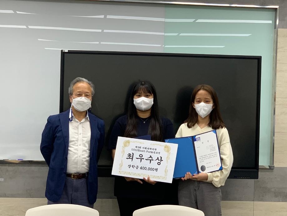 본문 시작 홈으로 매력적인 학과소개 매력적인 학과소개 흥미로운 교육과정 특별CC프로그램 We can 취업 따뜻한 커뮤니티 홈페이지가이드 지금 우리 광홍은 학과개요 학과연혁 교수소개 Wilco로 보는광고홍보학과 지금 우리 광홍은 지금 우리 광홍은 페이스북 트위터 프린트 [ 2022 사회과학대학 홍보 UCC / Short Form 공모전 시상식🎖] 광고홍보학과 2341 2022-06-13 6월 8일, 2022년 제 3회 사회과학대학 UCC / Short Form 공모전에서 광고홍보학과 팀 “김이유 주세유~”와 팀 “ADPR”이 각각 최우수상과 우수상을 수상하는 시상식이 열렸습니다! 두 팀의 수상을 진심으로 축하하며, 앞으로도 발전하고 참신한 아이디어를 보여주는 광고홍보학과를 기대해주시기 바랍니다😊 목록 이전[ 2022 사회과학대학 학부(과) 홍보 UCC / Short Form 공모전 수상🏆] 다음 [광고홍보학과 오윤지 학생회장 모니터링 임명장 수여식]