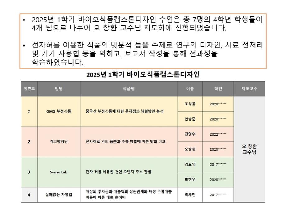 본문 시작 홈으로 학부소개 학부소개 진로·취업 교육과정 커뮤니티 대학원 입학상담 홈페이지가이드 갤러리 학부비전 학부장 인사말 학부연혁 학부장점 교수소개 교육시설 MOU 체결 갤러리 갤러리 페이스북 트위터 프린트 2025년 1학기 바이오캡스톤디자인 바이오식품영양학부 609 2025-06-21 목록 이전HACCP교육 이전20250507 제천고 진로아카데미전문가특강(오창환교수님) 만족도조사 만족도 조사 이 페이지에서 제공하는 정보에 대하여 만족하시나요? 매우만족 만족 보통 불만족 매우불만족