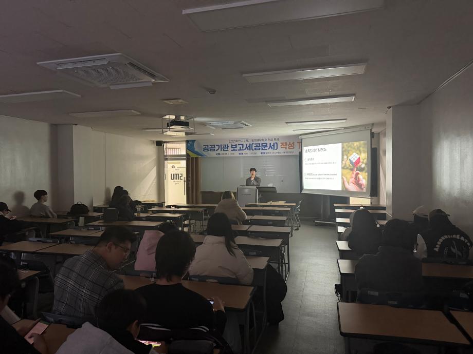 본문 시작 홈으로 교육과정 학과소개 취업정보 교육과정 학과소식 홈페이지가이드 비교과프로그램 교육과정 전공교육 체계도 비교과프로그램 회계 및 세무 분야 진로 특강 전산회계 특강 전산세무 특강 회계 및 세무 공무원 특강 회계 및 세무 분야 진로 특강 회계 및 세무 분야 진로 특강 페이스북 트위터 프린트 2025학년도 2학기 회계세무금융학과 진로 특강 회계세무금융학과 94 2026-02-03 2025학년도 2학기 건강보험심사평가원 팀장을 초청하여 공공기관 보고서 작성 방법에 관해 특강을 진행하였습니다. 목록 이전2025학년도 2학기 회계세무금융학과 진로 특강 만족도조사 만족도 조사 이 페이지에서 제공하는 정보에 대하여 만족하시나요? 매우만족 만족 보통 불만족 매우불만족