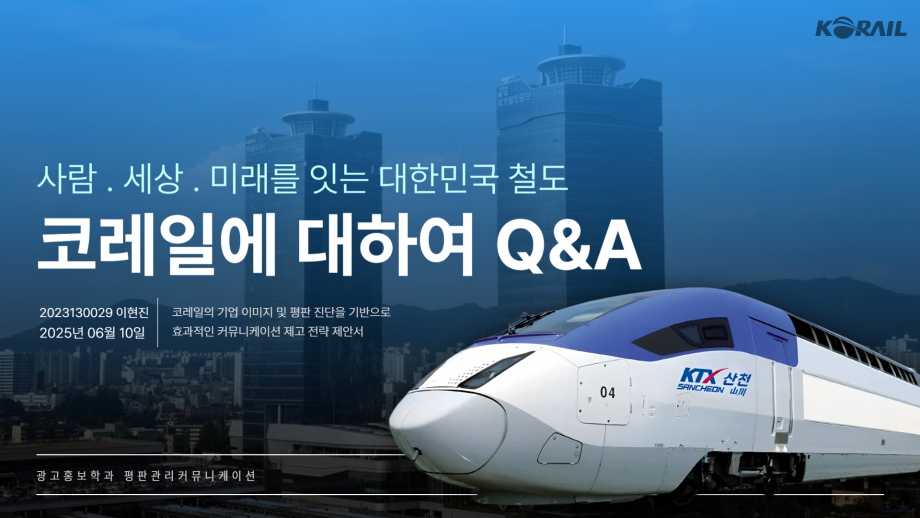 본문 시작 홈으로 흥미로운 교육과정 매력적인 학과소개 흥미로운 교육과정 특별CC프로그램 We can 취업 따뜻한 커뮤니티 홈페이지가이드 작품 갤러리 교육일정 교육과정 전공교육 체계도 졸업후진로 작품 갤러리 작품 갤러리 페이스북 트위터 프린트 [평판관리]코레일 평판관리커뮤니케이션 기획서 광고홍보학과 1795 2025-06-25 2025년도 1학기 평판관리커뮤니케이션 이현진_코레일 평판관리 목록 이전[2024KOSAC]대한민국대학생광고대회 출품작 다음 [2025KOSAC]대한민국대학생광고대회