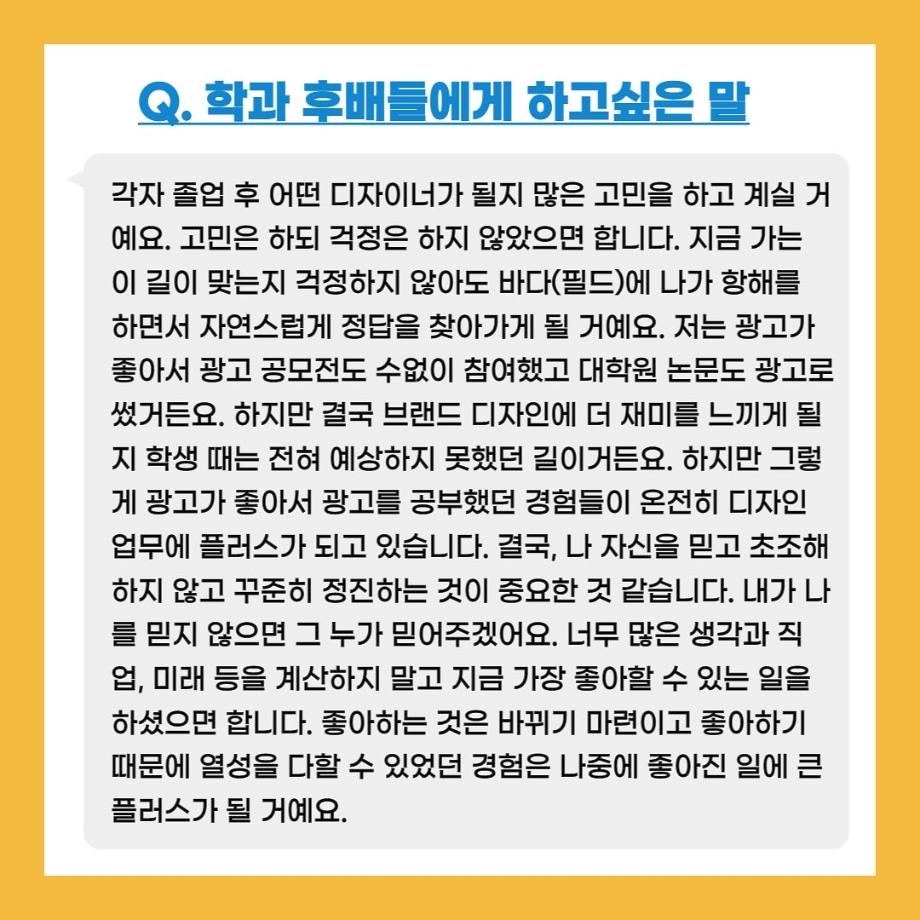 본문 시작 홈으로 입학/취업 학과소개 학과과정 시영소식 입학/취업 AI 학과자랑 SNS소통 홈페이지가이드 취업지금 입학여기 취업지금 전공소개 취업지금 페이스북 트위터 프린트 자랑스럽고 빛나는 선배들 1탄! 시각영상디자인학과 2477 2022-02-07 목록 이전세명동문열전 - 유소연 가화디자인 대표 다음 자랑스럽고 빛나는 선배들 2탄! 담당부서 : 시각영상디자인학과 담당자 : - 연락처 : 043-649-1726 최종수정일 : 2024-10-26 만족도조사 만족도 조사 이 페이지에서 제공하는 정보에 대하여 만족하시나요? 매우만족 만족 보통 불만족 매우불만족