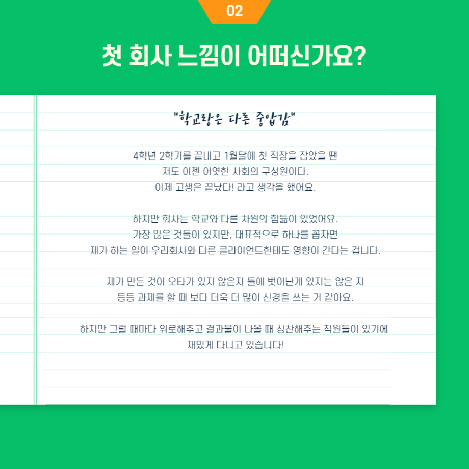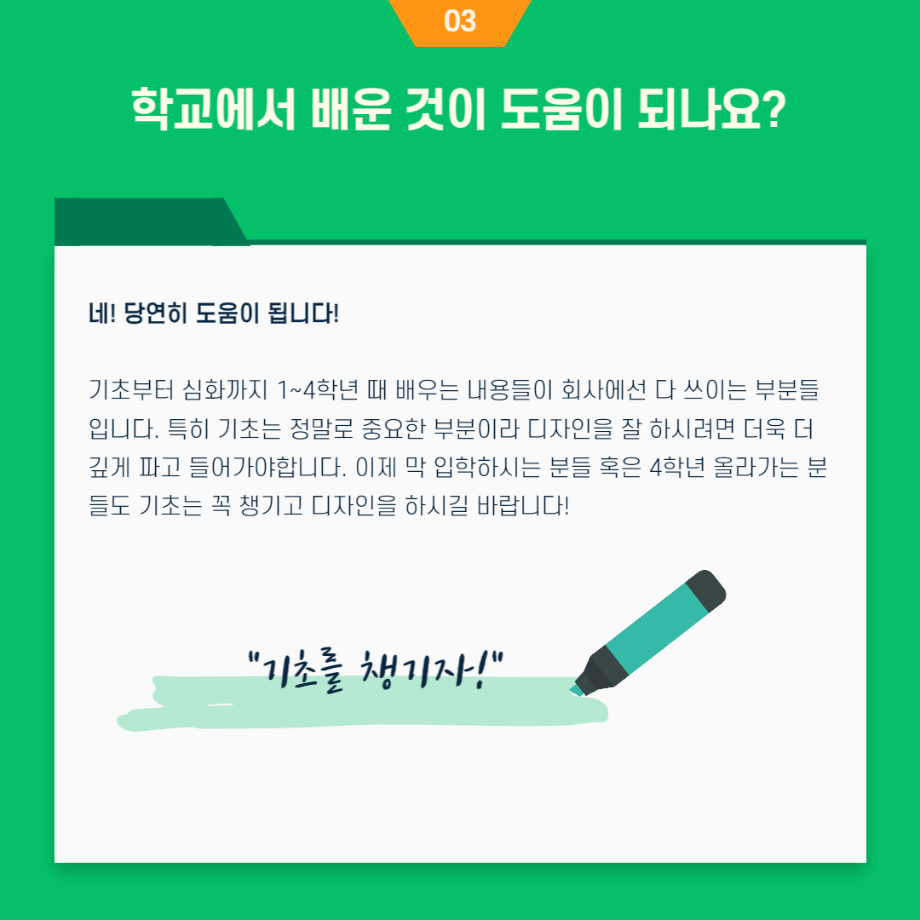 본문 시작 홈으로 입학/취업 학과소개 학과과정 시영소식 입학/취업 AI 학과자랑 SNS소통 홈페이지가이드 취업지금 입학여기 취업지금 전공소개 취업지금 페이스북 트위터 프린트 시각영상디자인학과 윤지훈 졸업생 - 가산디지털단지 디자인회사 취업! 시각영상디자인학과 2568 2023-03-29 목록 이전시각영상디자인학과 19학번 송나은 졸업생 - 서울 강남구 대치동 광고회사 취업! 다음 취업사례 중 대학원 진학 편 담당부서 : 시각영상디자인학과 담당자 : - 연락처 : 043-649-1726 최종수정일 : 2024-10-26 만족도조사 만족도 조사 이 페이지에서 제공하는 정보에 대하여 만족하시나요? 매우만족 만족 보통 불만족 매우불만족