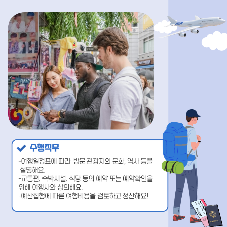 본문 시작 홈으로 머글 한줌단 학과안내 교수소개 교육과정 커뮤니티 머글 한줌단 홈페이지가이드 진로? 무물!! 어쩔 TV 저쩔 TV 진로? 무물!! TM Youtube TM Instagram TM Blog TM Facebook 진로? 무물!! 페이스북 트위터 프린트 해외여행 인솔자(Tour Conductor) 전체관리자 1322 2022-01-28 해외여행 인솔자(Tour Conductor) 목록 다음 국제회의 기획자(Convention Organizer) 만족도조사 만족도 조사 이 페이지에서 제공하는 정보에 대하여 만족하시나요? 매우만족 만족 보통 불만족 매우불만족