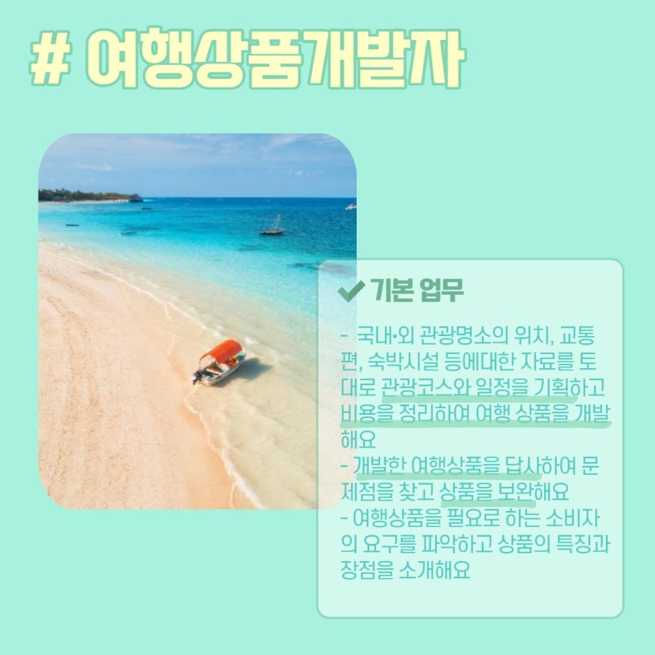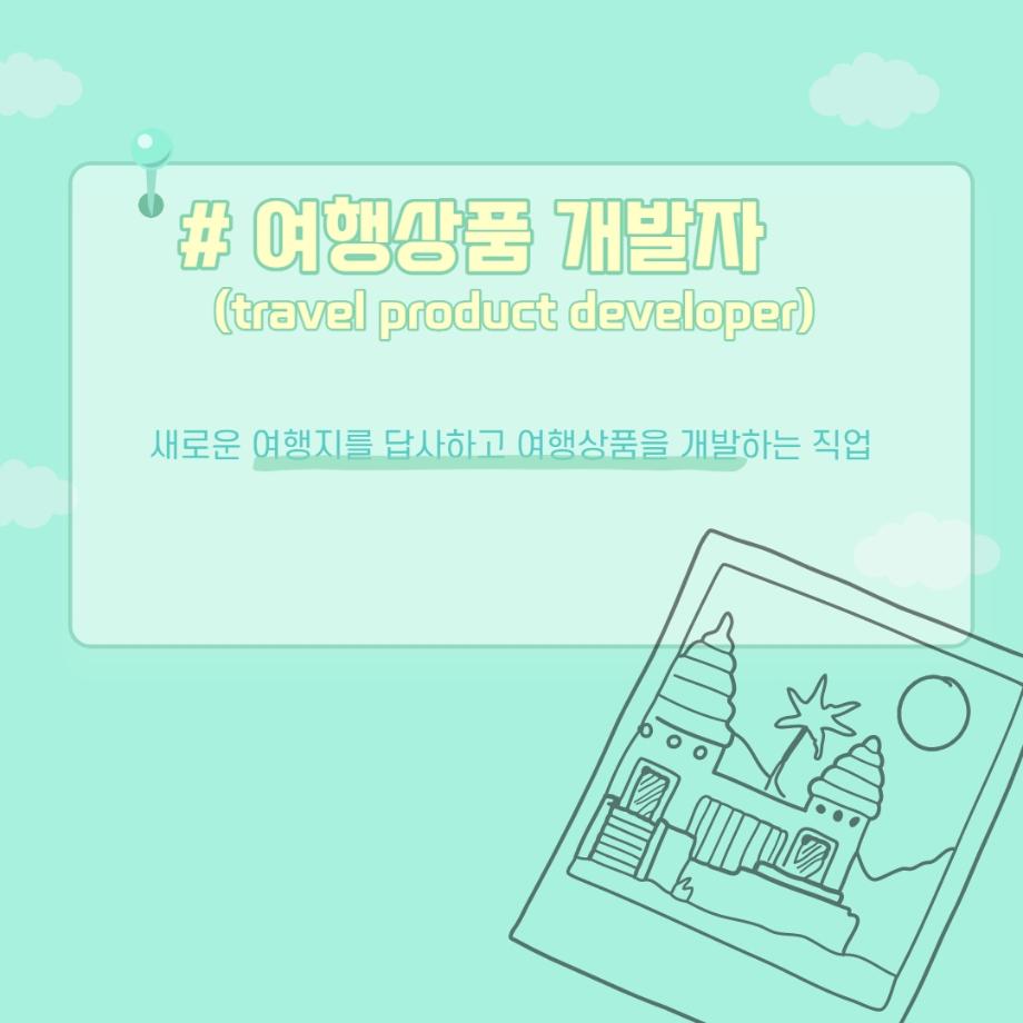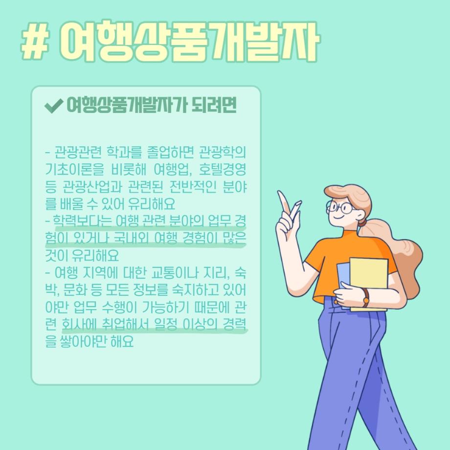 본문 시작 홈으로 머글 한줌단 학과안내 교수소개 교육과정 커뮤니티 머글 한줌단 홈페이지가이드 진로? 무물!! 어쩔 TV 저쩔 TV 진로? 무물!! TM Youtube TM Instagram TM Blog TM Facebook 진로? 무물!! 페이스북 트위터 프린트 여행상품개발자 관광경영학과 3099 2022-06-02 여행상품개발자(Travel Product Developer) 목록 이전항공사 승무원 (Steward / Stewardess) 다음 문화관광해설사(Cultural Heritage Guide) 만족도조사 만족도 조사 이 페이지에서 제공하는 정보에 대하여 만족하시나요? 매우만족 만족 보통 불만족 매우불만족