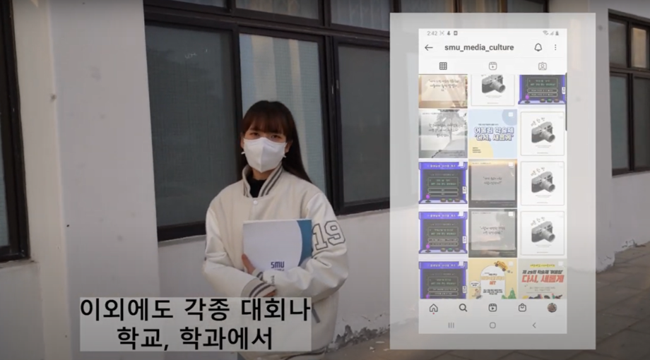 이번 미문 한 컷에서도 4학년 학생들이 제작한 영상의 일부분을 캡쳐하여 가져왔습니다! 4학년 교과목 중 하나인 [미디어문화캡스톤디자인] 과목에서 제작한 영상으로, 세명대학교 미디어문화학부의 한국어교육 전공에 대해 소개하고 있습니다.