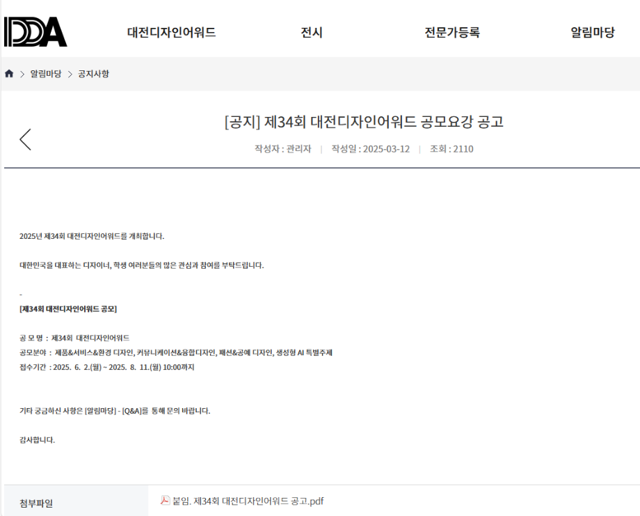 본문 시작 홈으로 시영소식 학과소개 학과과정 시영소식 입학/취업 AI 학과자랑 SNS소통 홈페이지가이드 공모전 공지사항 학과행사 공모전 학생 인터뷰 공모전 페이스북 트위터 프린트 대전디자인어워드 시각영상디자인학과 874 2025-05-26 https://www.didpdda.or.kr/home/kor/main.do 목록 이전2025 한글활용디자인공모전 다음 제14회 충청북도 공공디자인공모전 담당부서 : 시각영상디자인학과 담당자 : - 연락처 : 043-649-1726 최종수정일 : 2024-10-26 만족도조사 만족도 조사 이 페이지에서 제공하는 정보에 대하여 만족하시나요? 매우만족 만족 보통 불만족 매우불만족